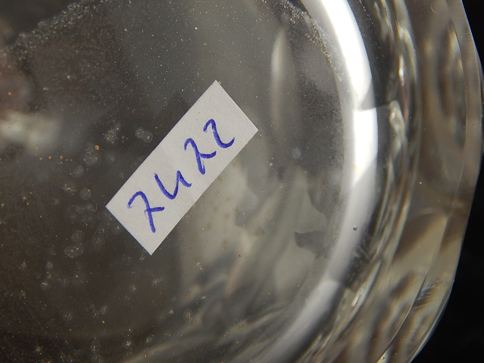 La bottiglia di cristallo misura 32 cm. di altezza con il tappo e 12,5 cm. di diametro massimo.