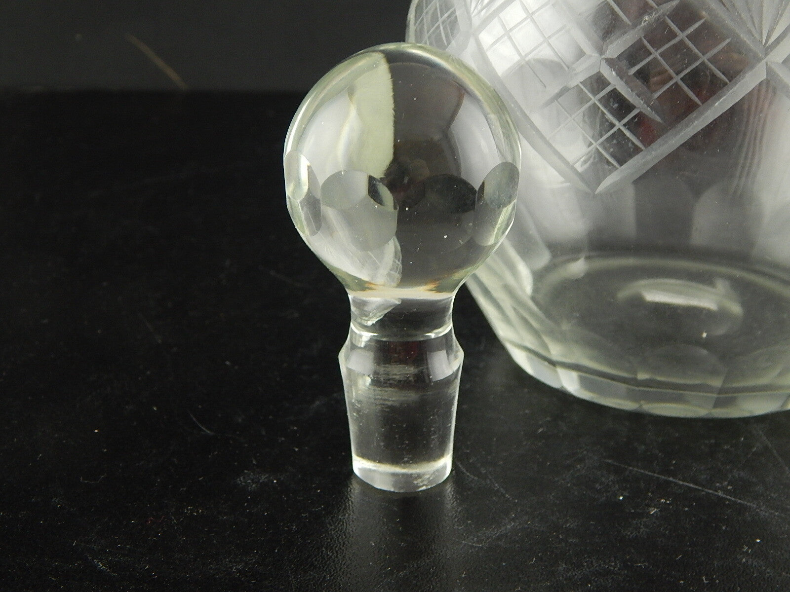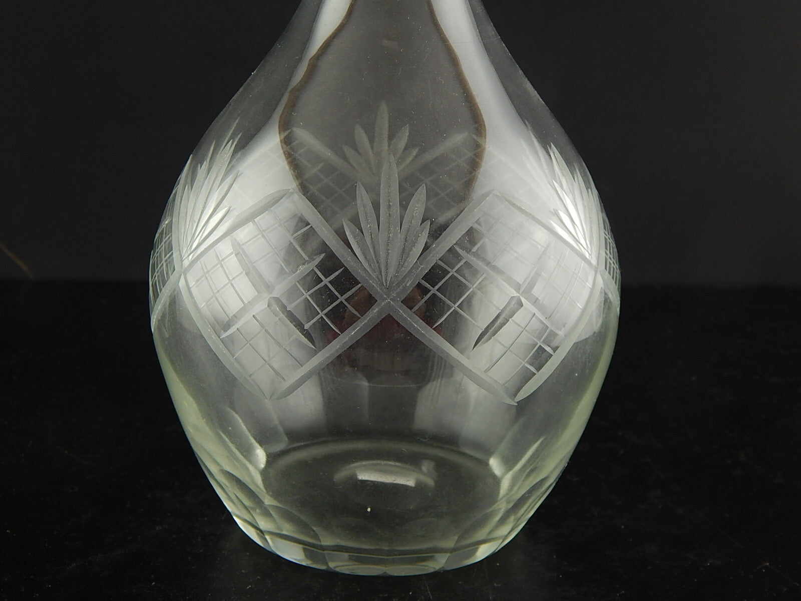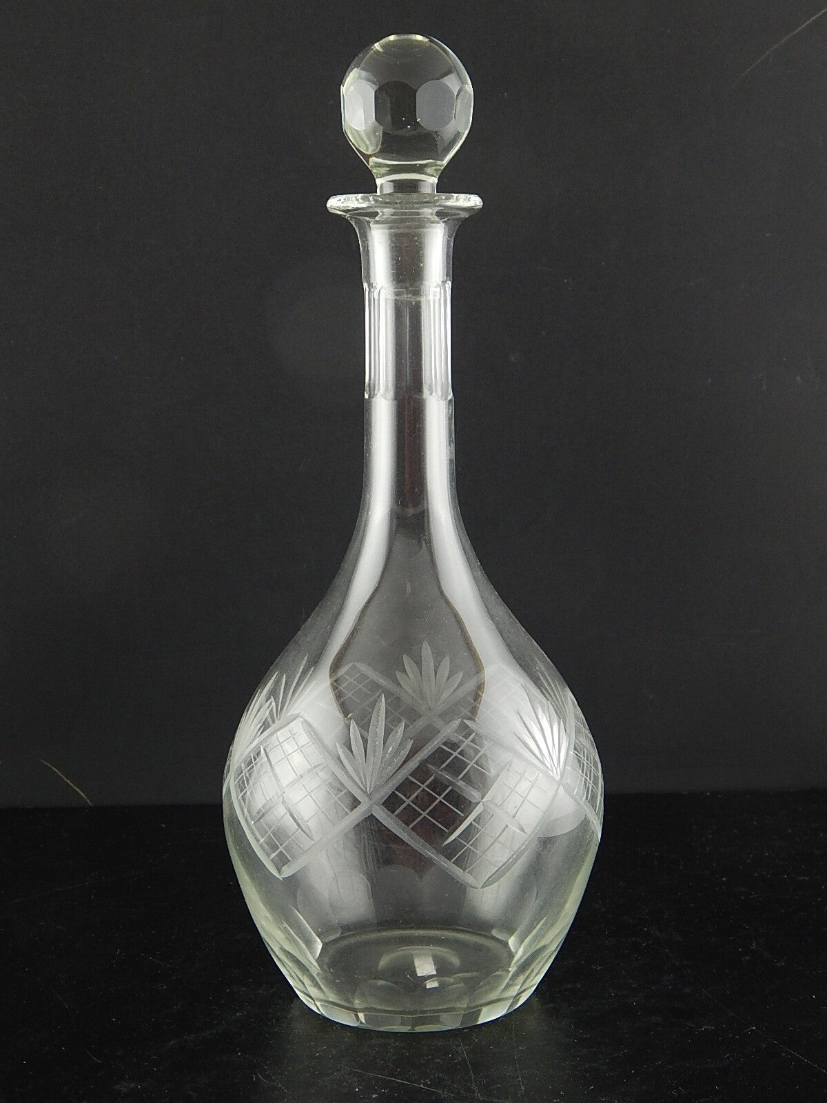 In questa inserzione viene presentata una bottiglia da tavola antica del periodo Art Deco realizzata in cristallo molato e inciso