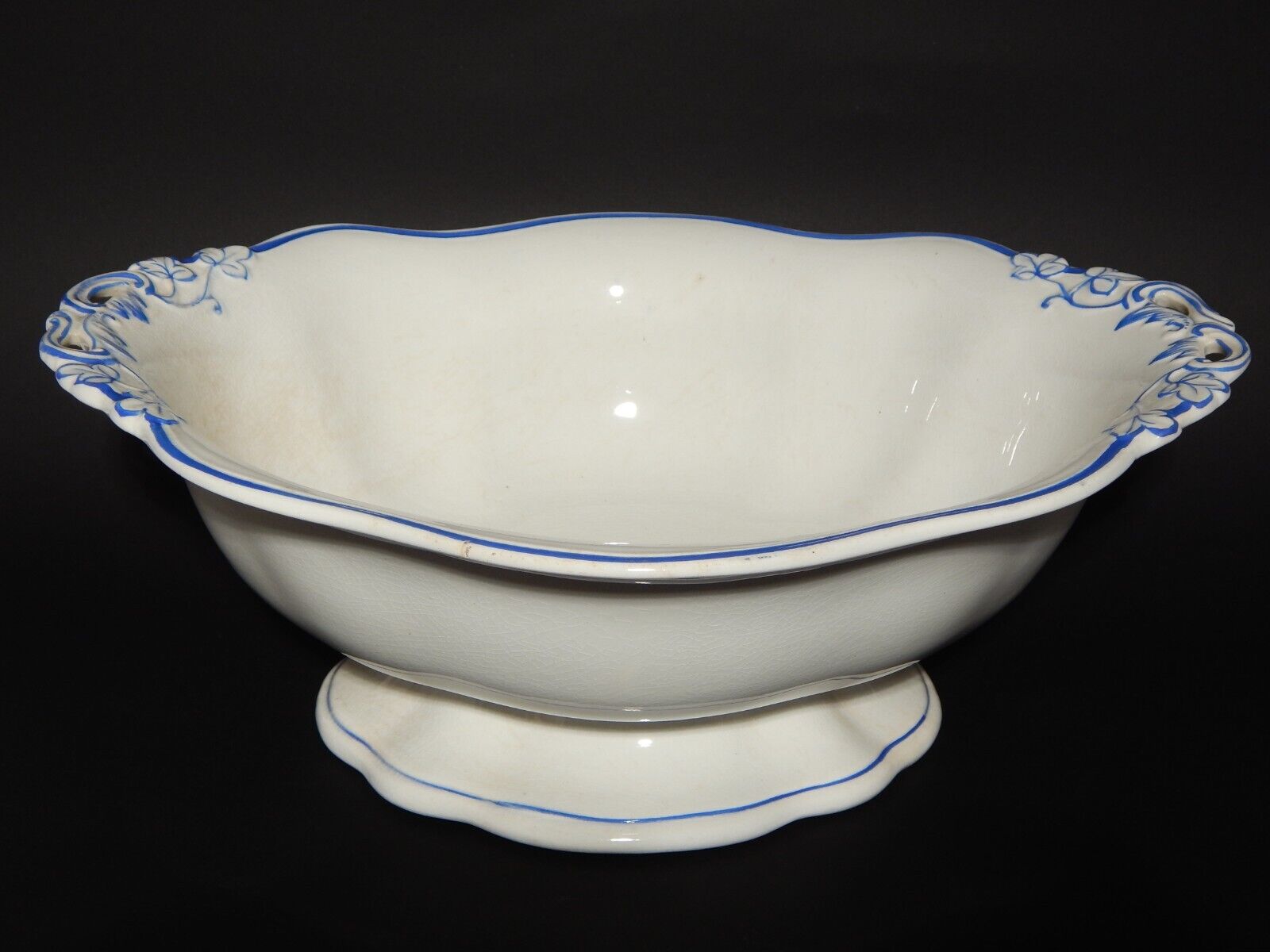 ANTICA RARA FRUTTIERA CENTROTAVOLA CERAMICA BIANCA E BLU RICHARD MILANO FINE 800