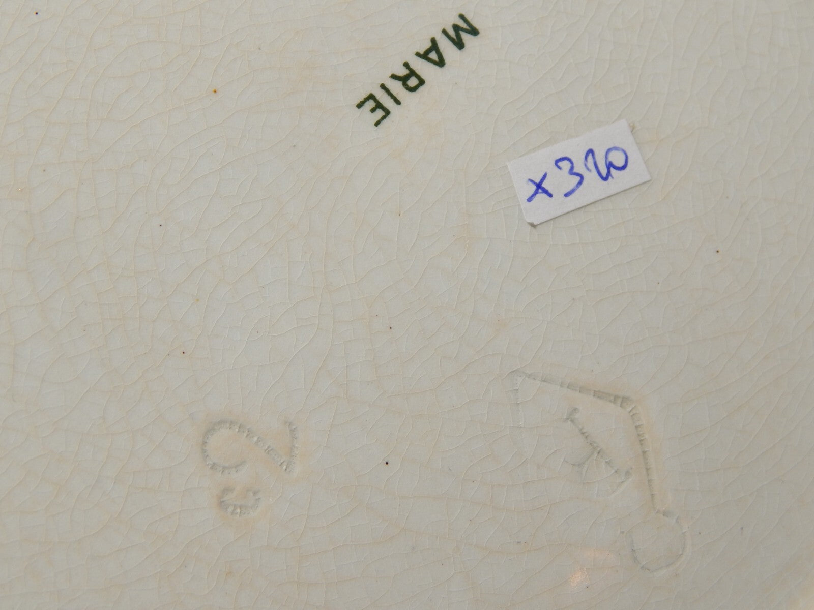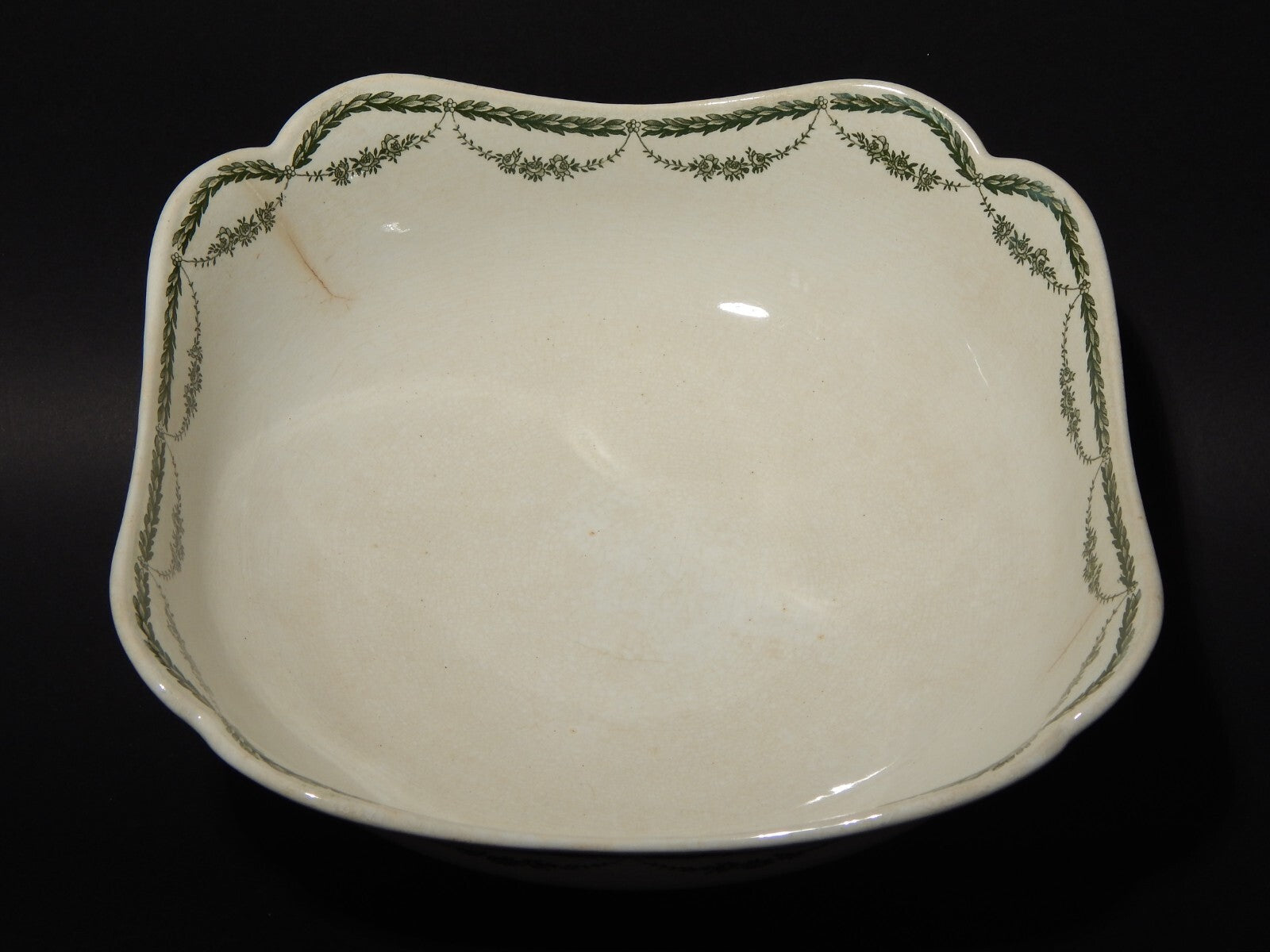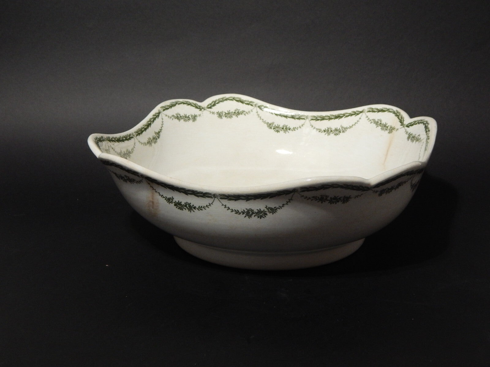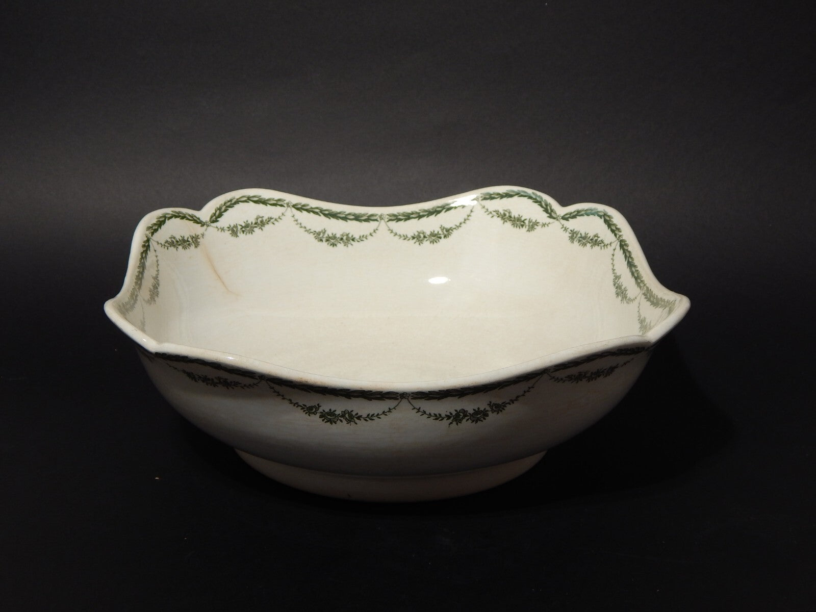 In questa inserzione viene presentata una fruttiera realizzata in ceramica e decorata sottosmalto in verde dalla rinomata manifattura olandese Petrus Regout di Maastricht a metà del 1800