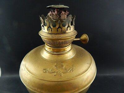 In questa inserzione viene proposta un'antica lampada da tavolo a petrolio di epoca Liberty realizzata dalla fabbrica di Ferrara F.lli Santini AQUILAS nei primi anni del 1900