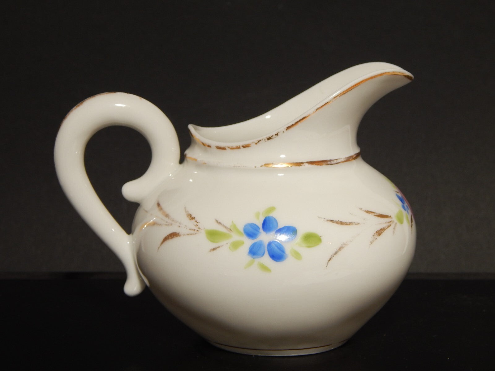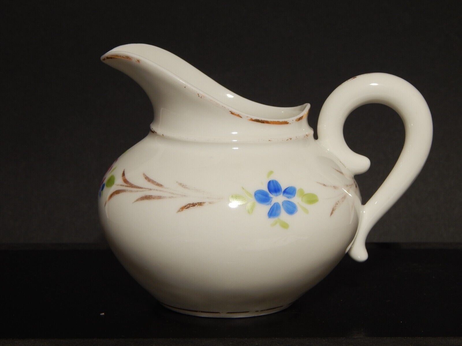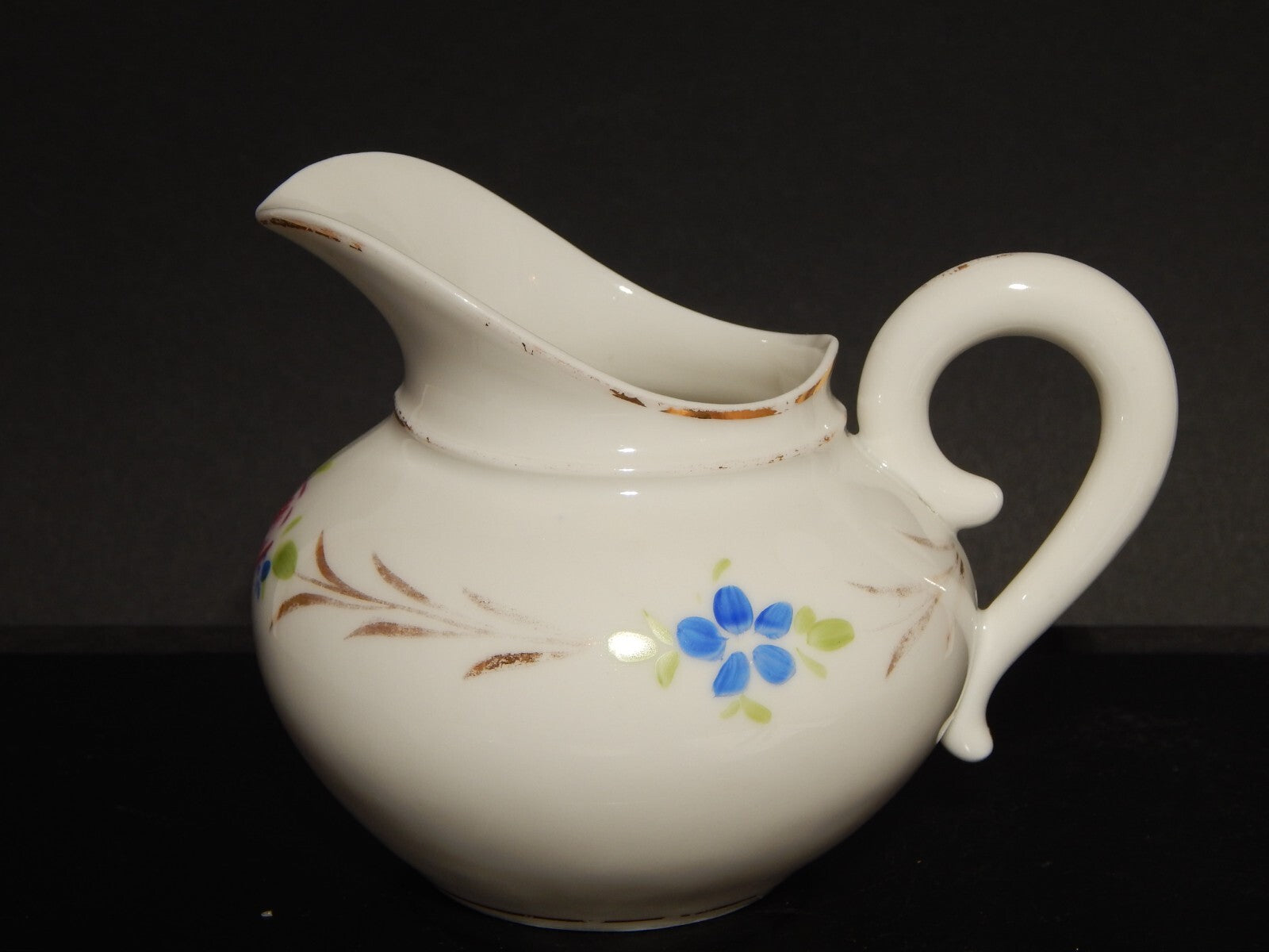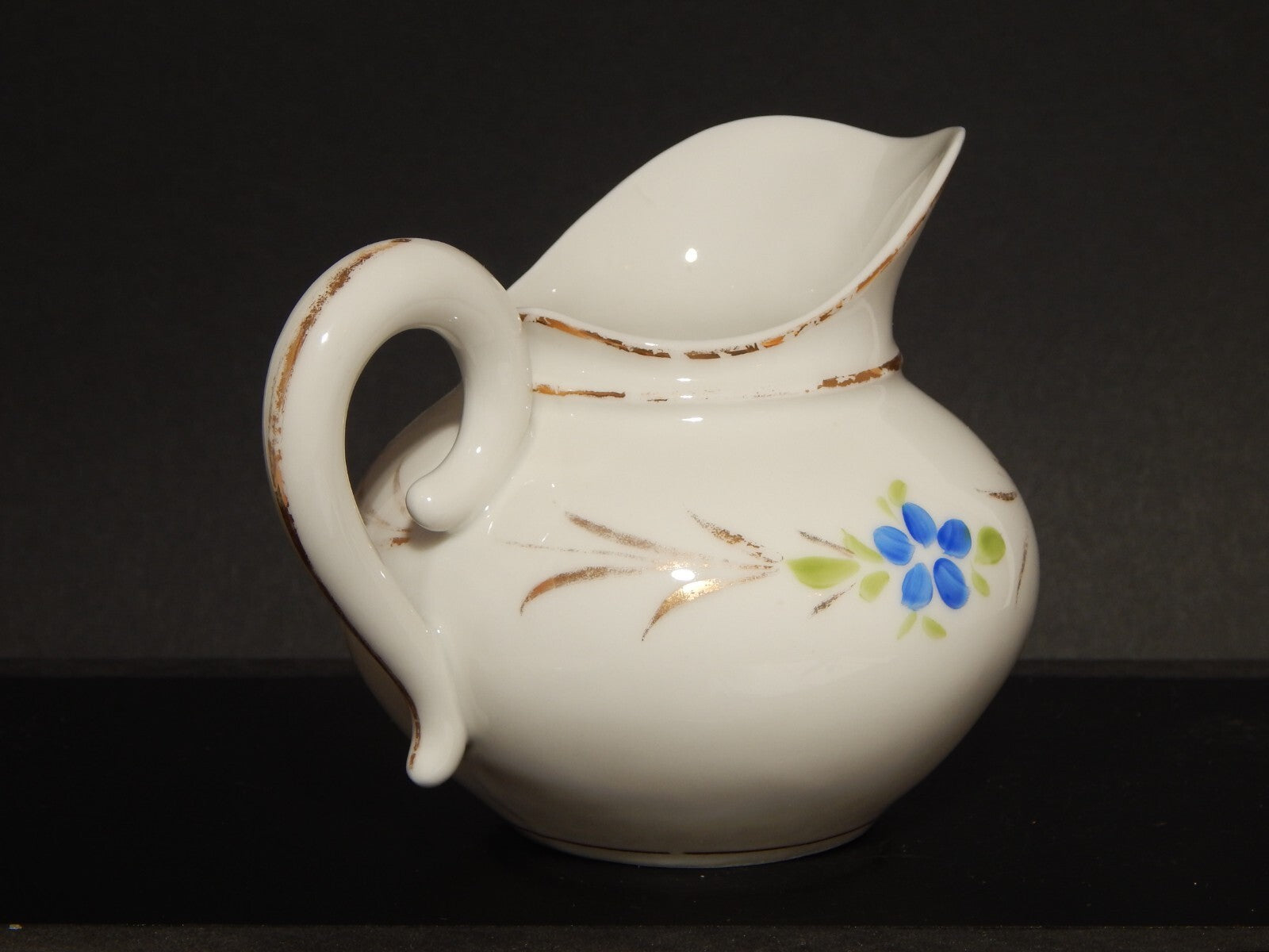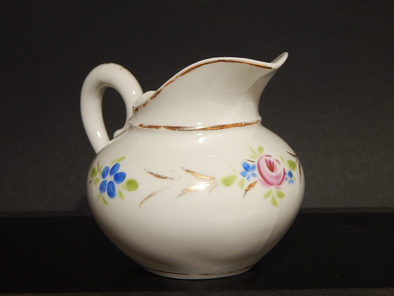 La lattiera in porcellana bianca è stata decorata a mano con fiori policromi e oro zecchino