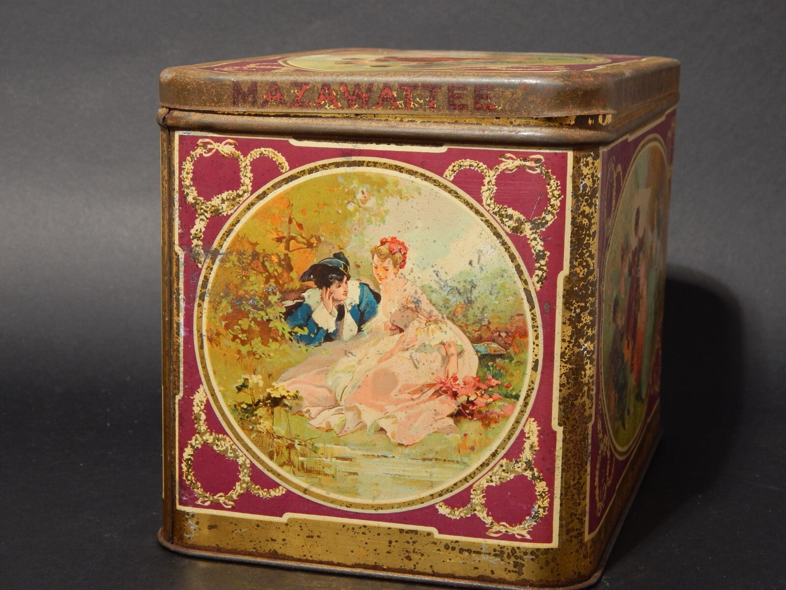 ANTICA RARA ORIGINALE SCATOLA LATTA INGLESE MAZAWATTEE TEA NEW CROSS LONDON