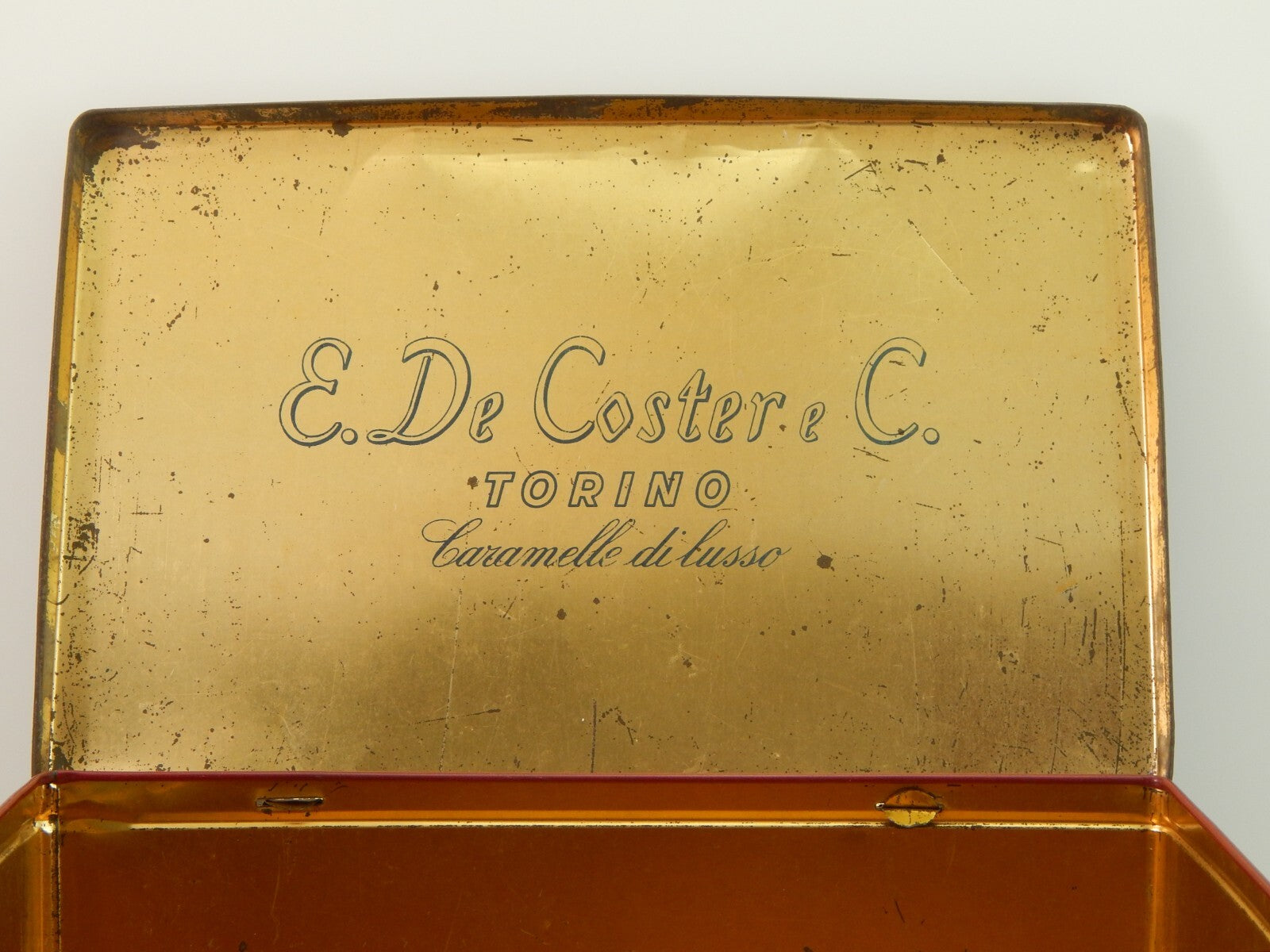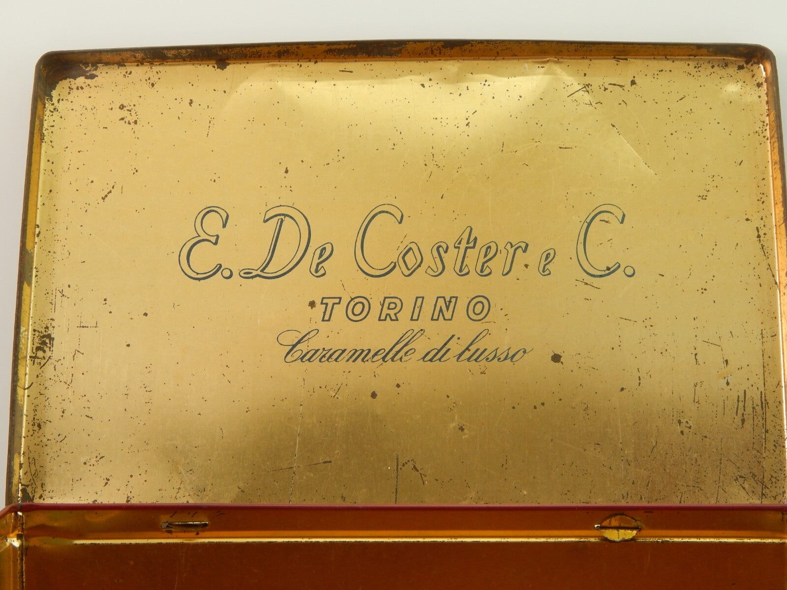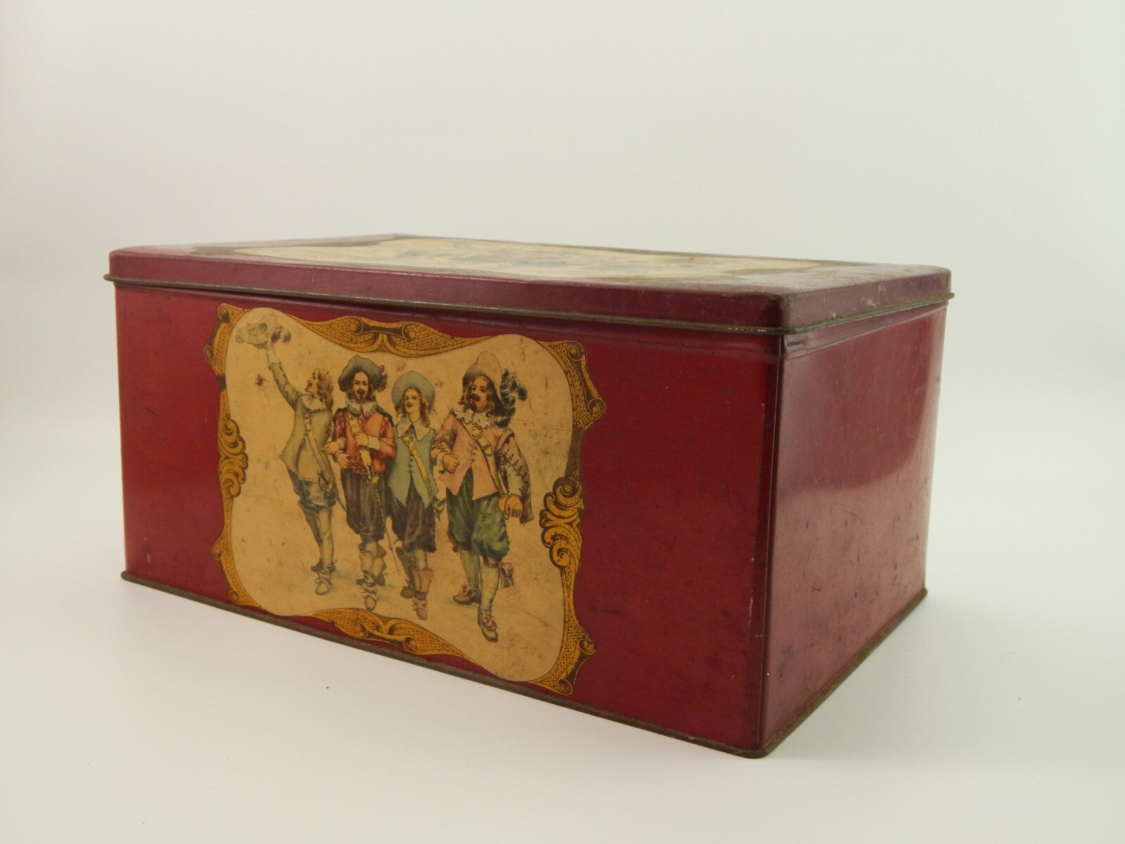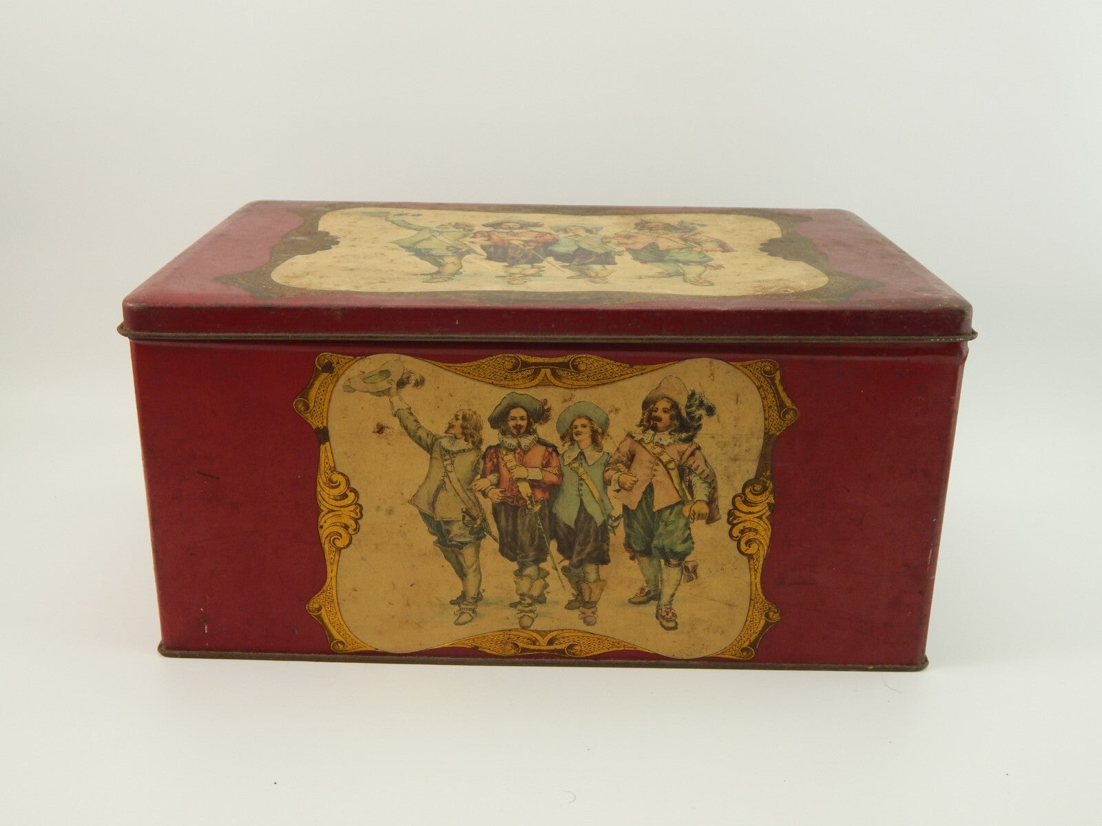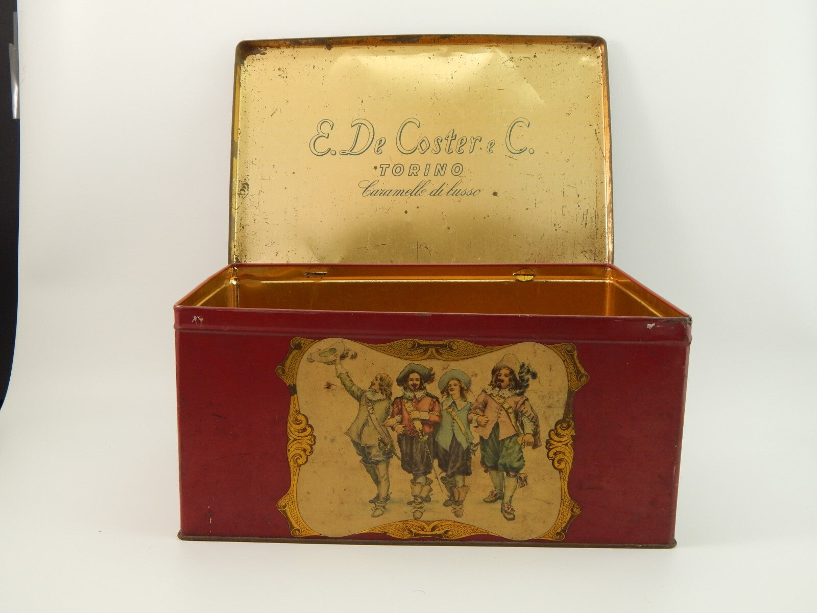 ANTICA RARA SCATOLA LATTA CARAMELLE E. DE COSTER & C. TORINO I MOSCHETTIERI