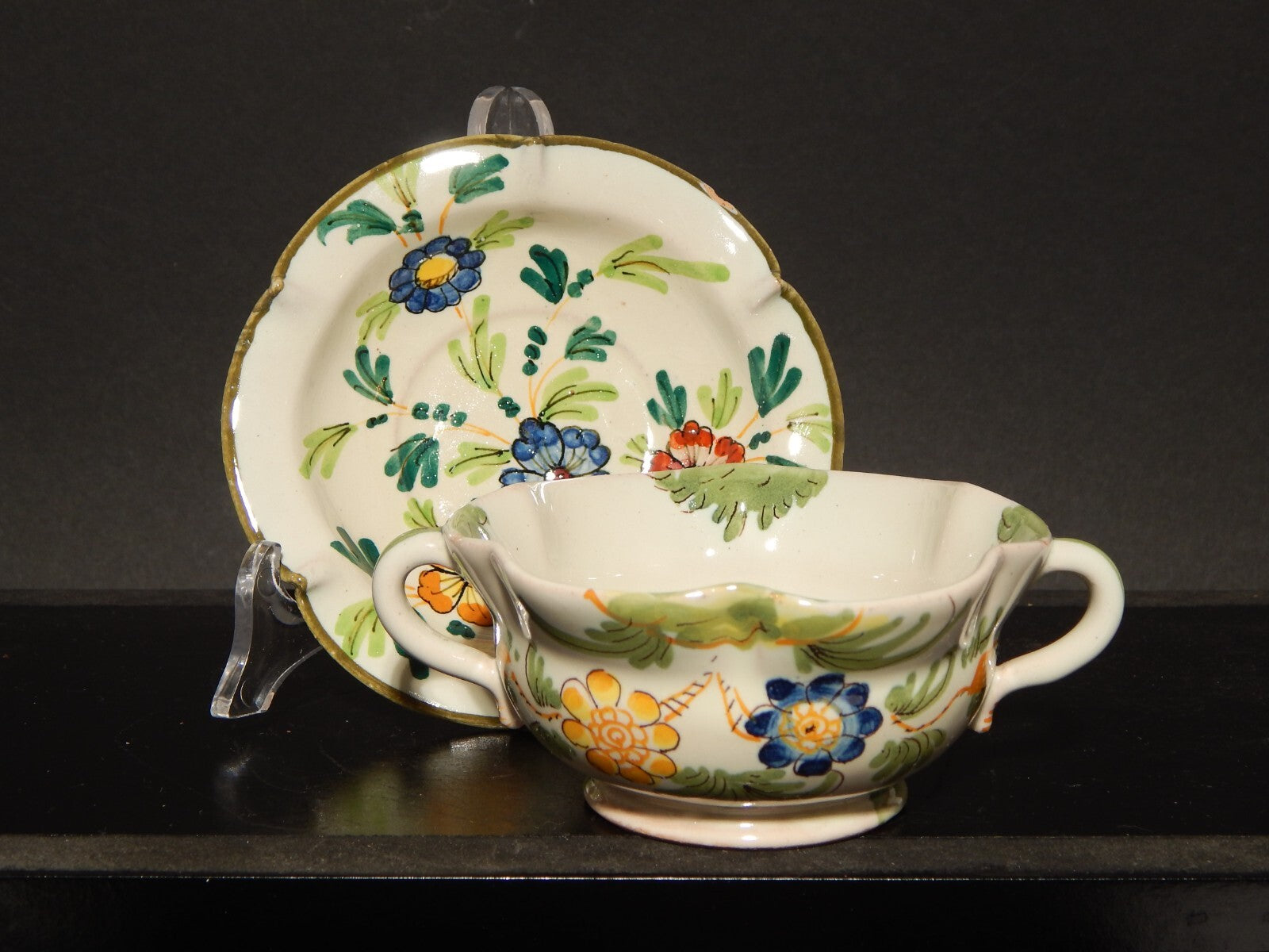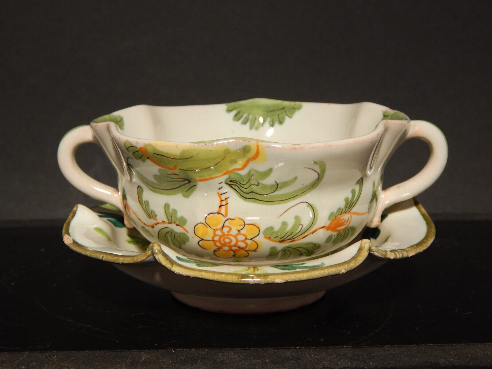In questa inserzione viene presentata un'antica zuccheriera o ciotola con relativo piattino in maiolica realizzata dalla famosa manifattura di Firenze Cantagalli con decoro a motivi floreali policromi dipinto a mano