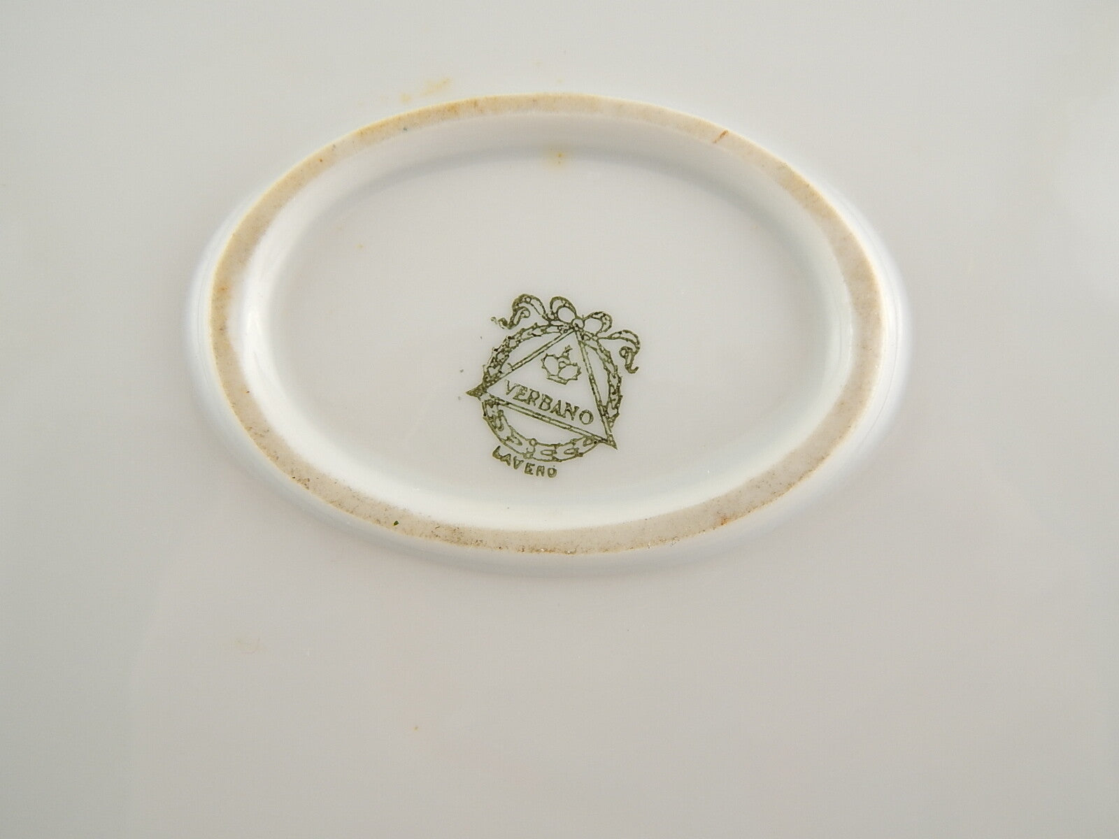 Il marchio stampato sulla fruttiera è quello che veniva usato dallo stabilimento creato nel 1930, che per molto tempo collaborò anche con la famosa fabbrica tedesca Rosenthal, per realizzare oggetti in porcellana più raffinati rispetto a quelli in terraglia che venivano prodotti nell'altro stabilimento Verbanum Stone.