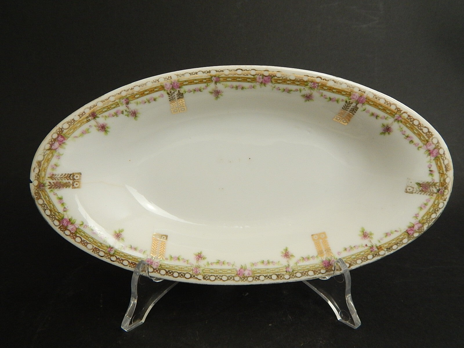 ANTICA RAVIERA VASSOIO PORCELLANA GINORI LIBERTY GHIRLANDE DI ROSE ORO DIFETTO