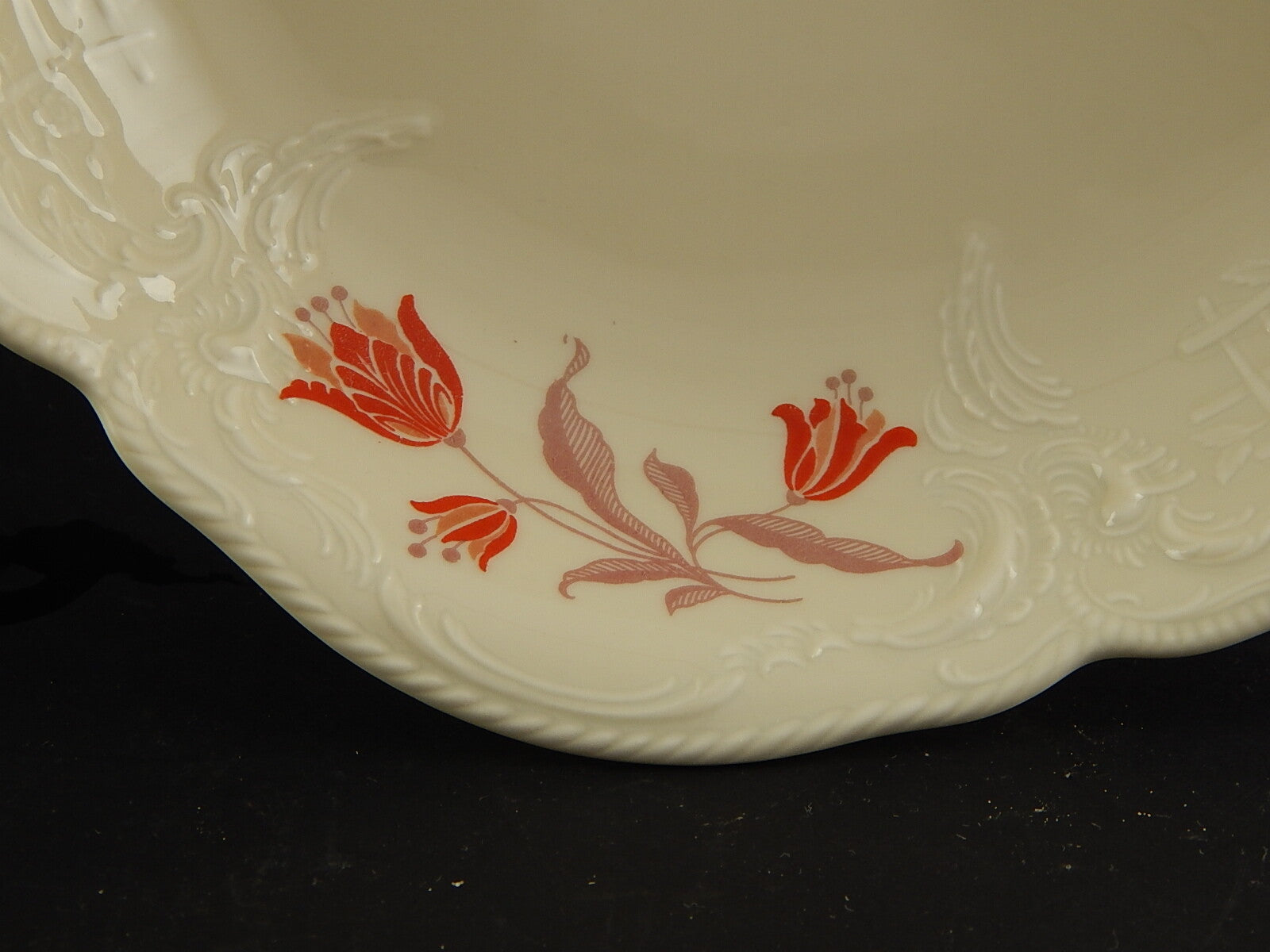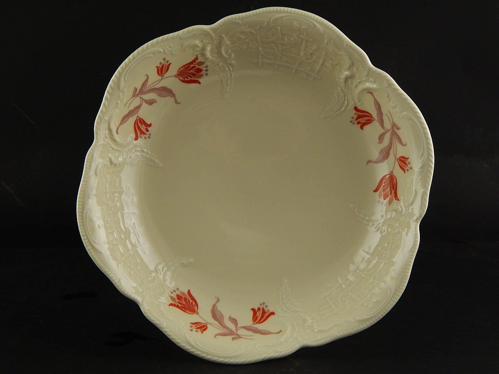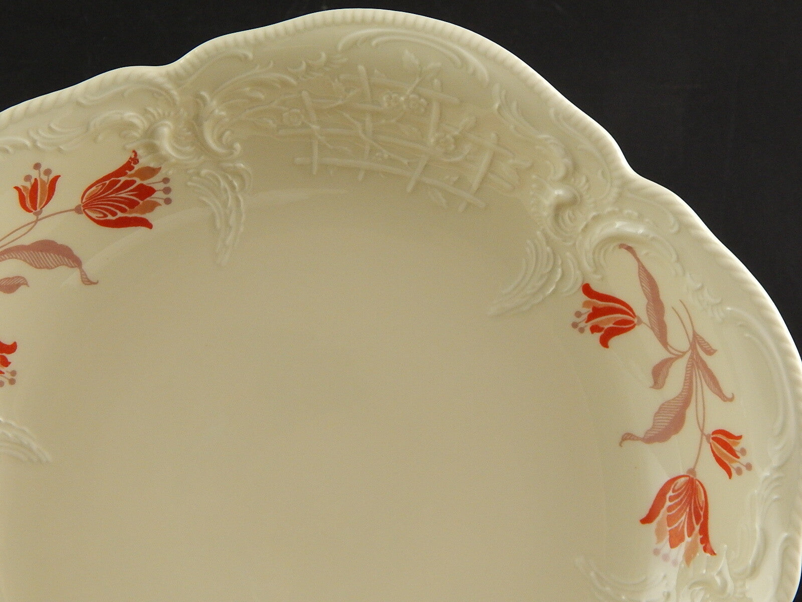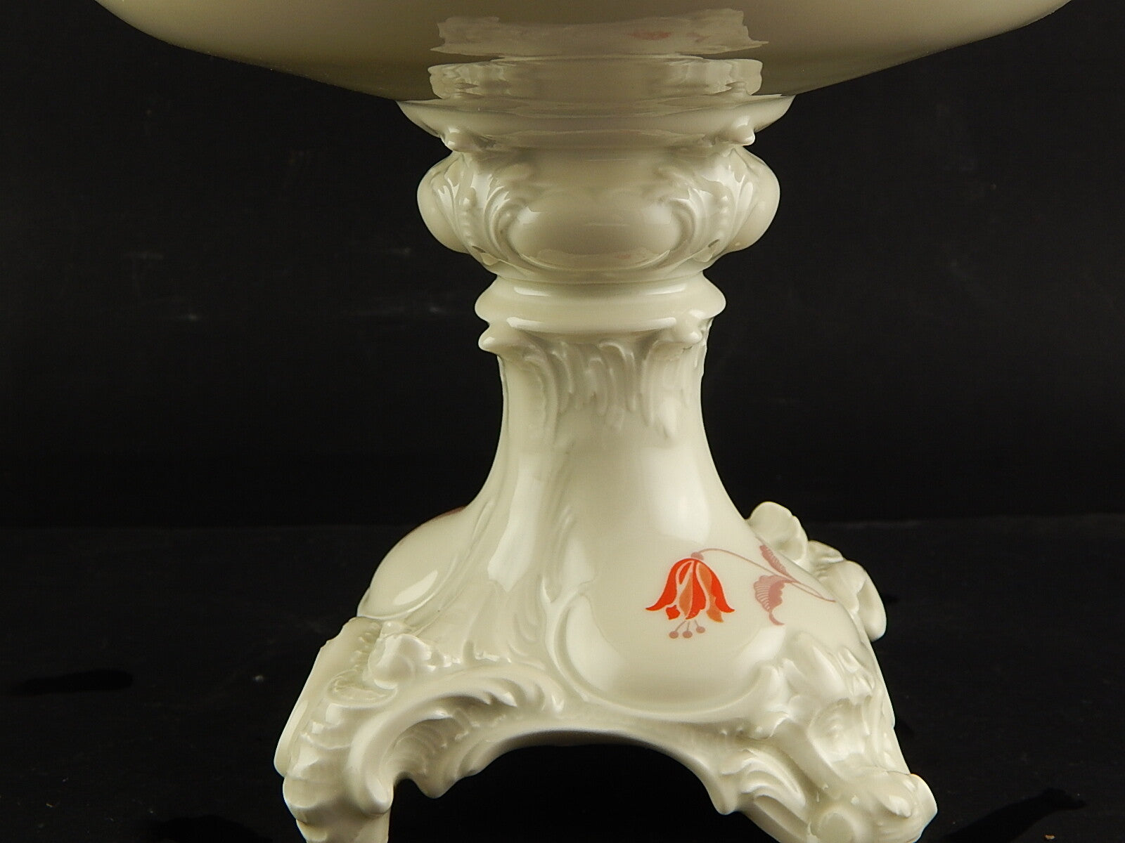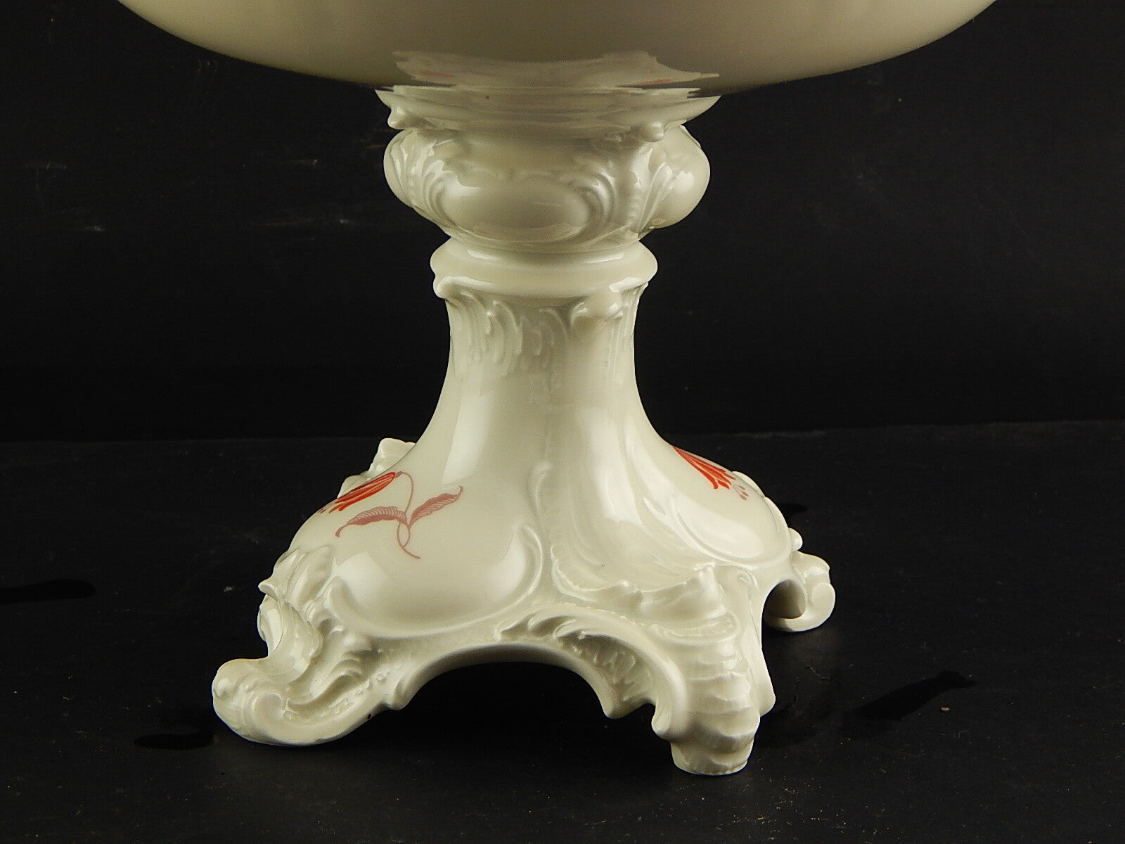 In questa inserzione viene presentata un'antica alzata in porcellana color avorio decorata in rilievo prodotta dalla rinomata manifattura Rosenthal nel 1938