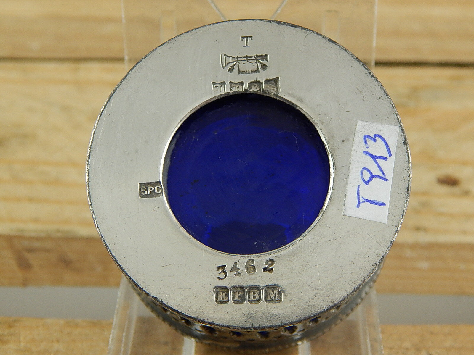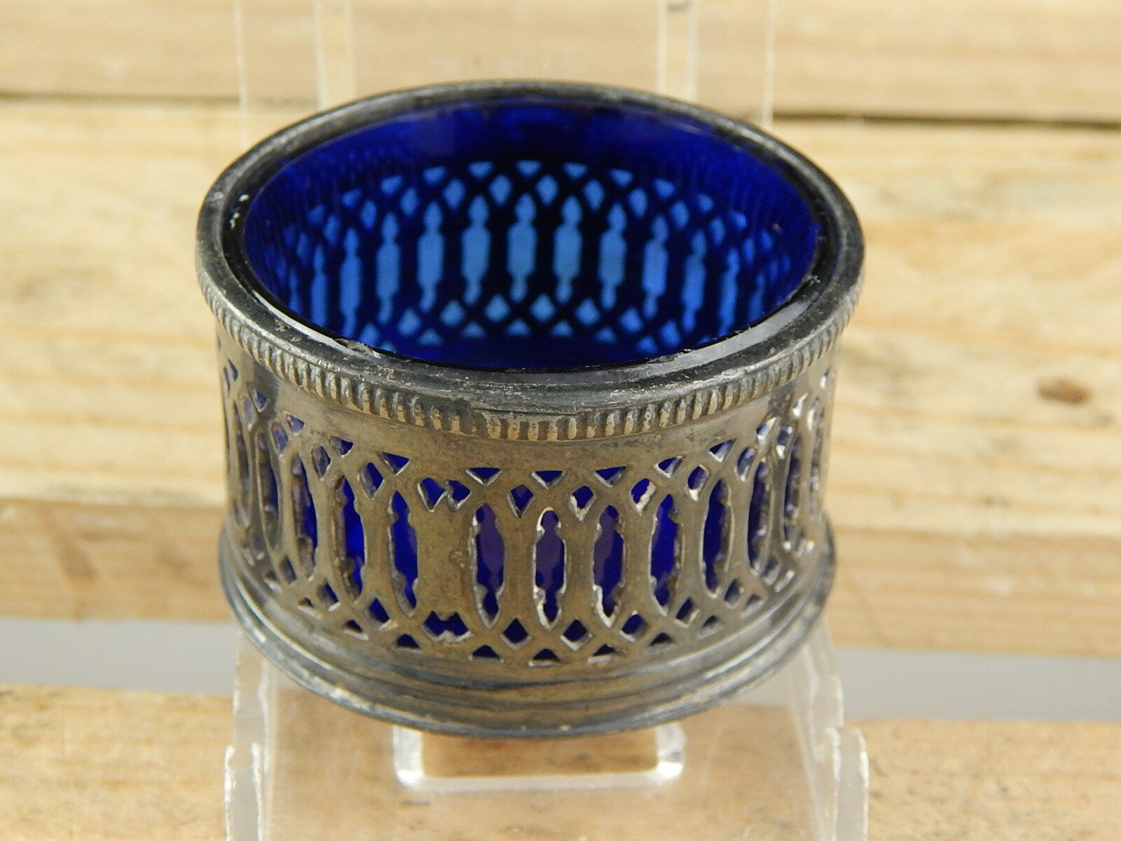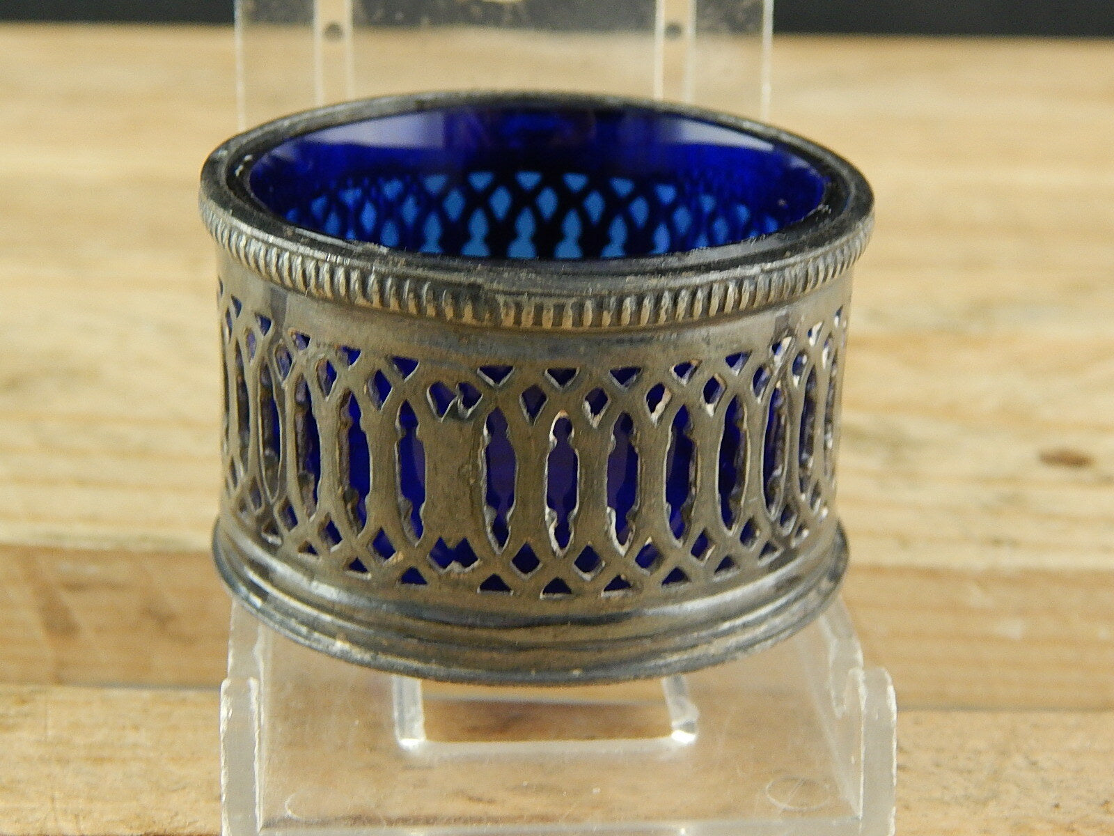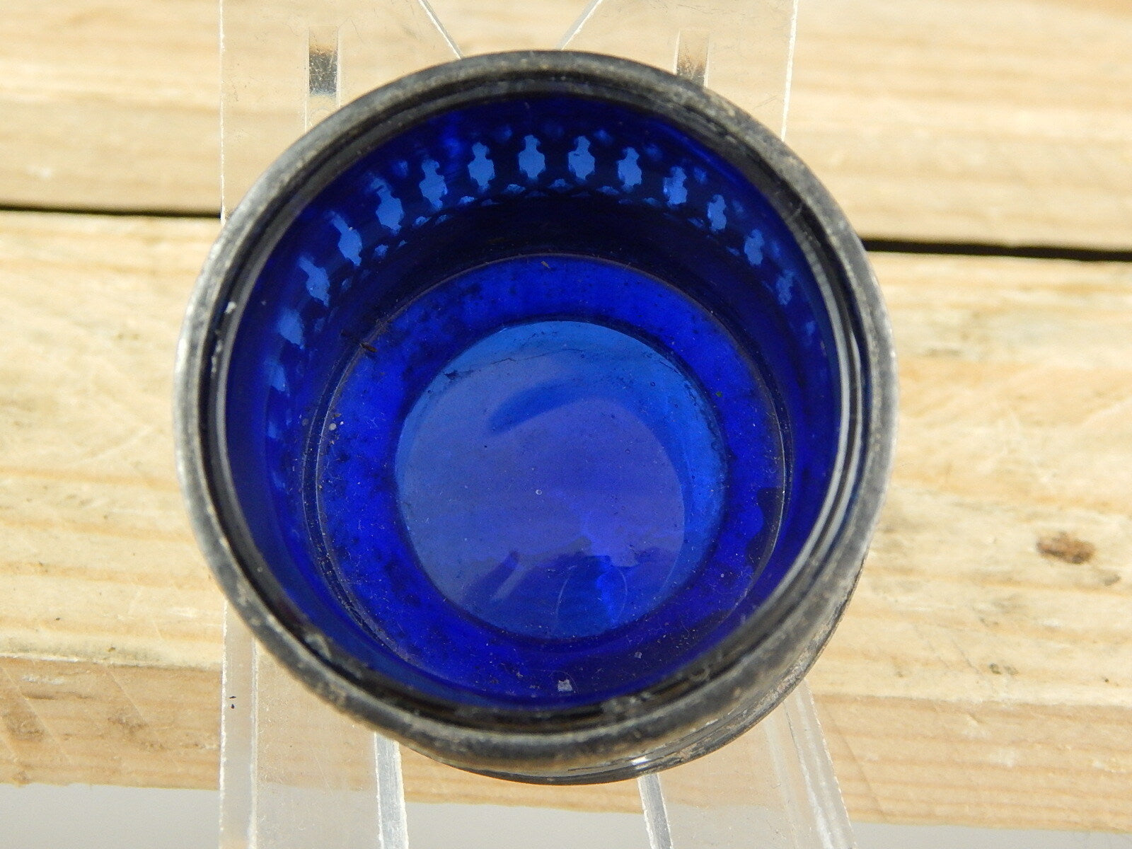 La saliera Sheffield con vetro in blu cobalto misura 5 cm di diametro e 3,5 cm di altezza
