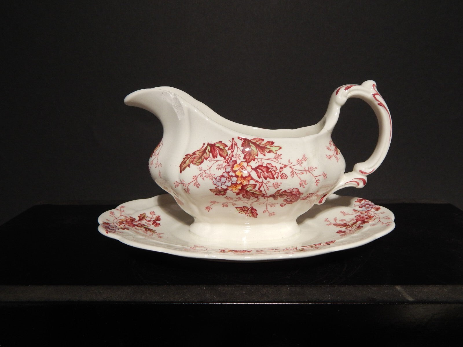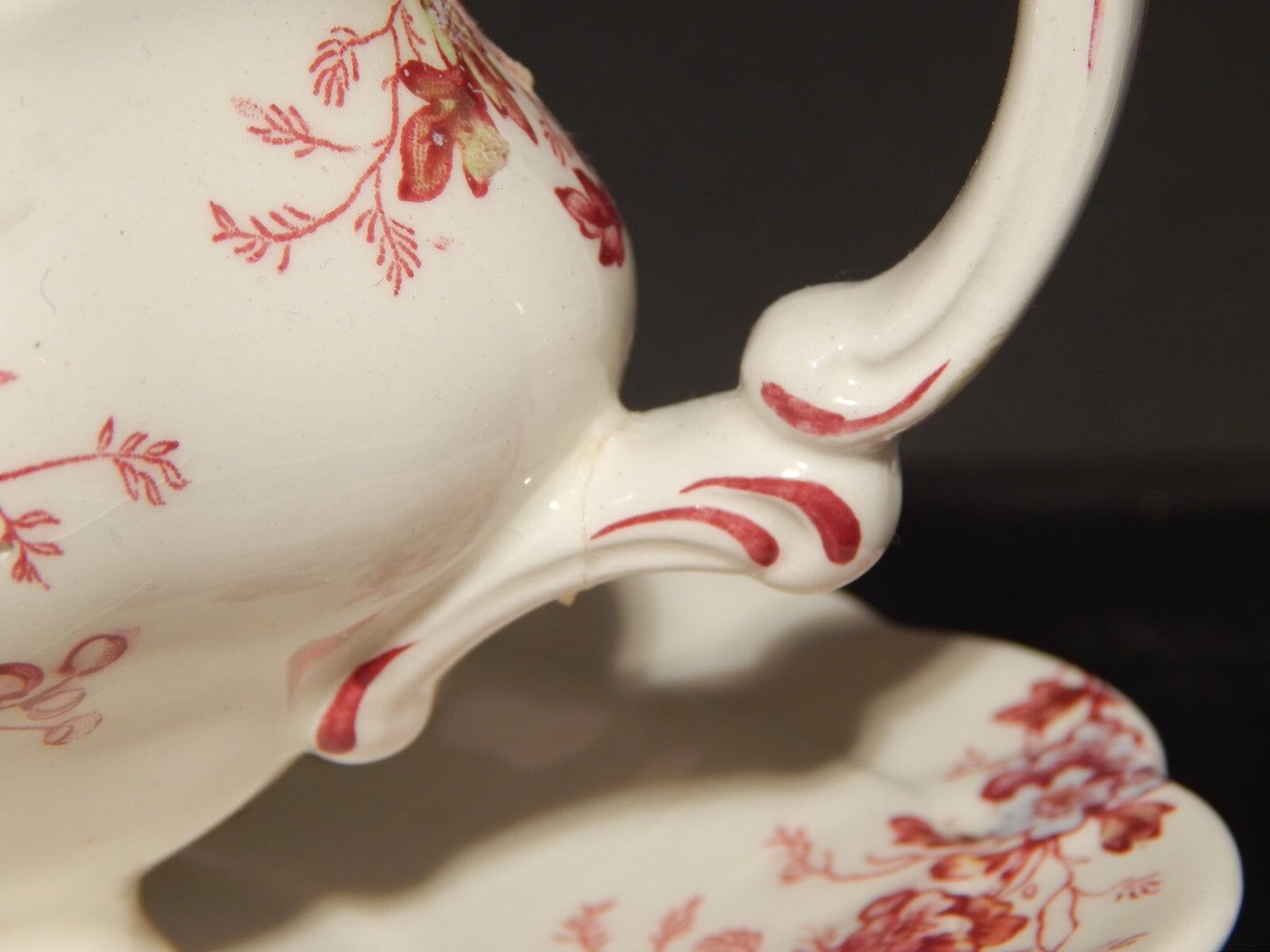In questa inserzione viene presentata un'antica salsera realizzata nei primi anni del 1900 dalla rinomata manifattura inglese Booths nel famoso decoro Washington sui toni del rosa
