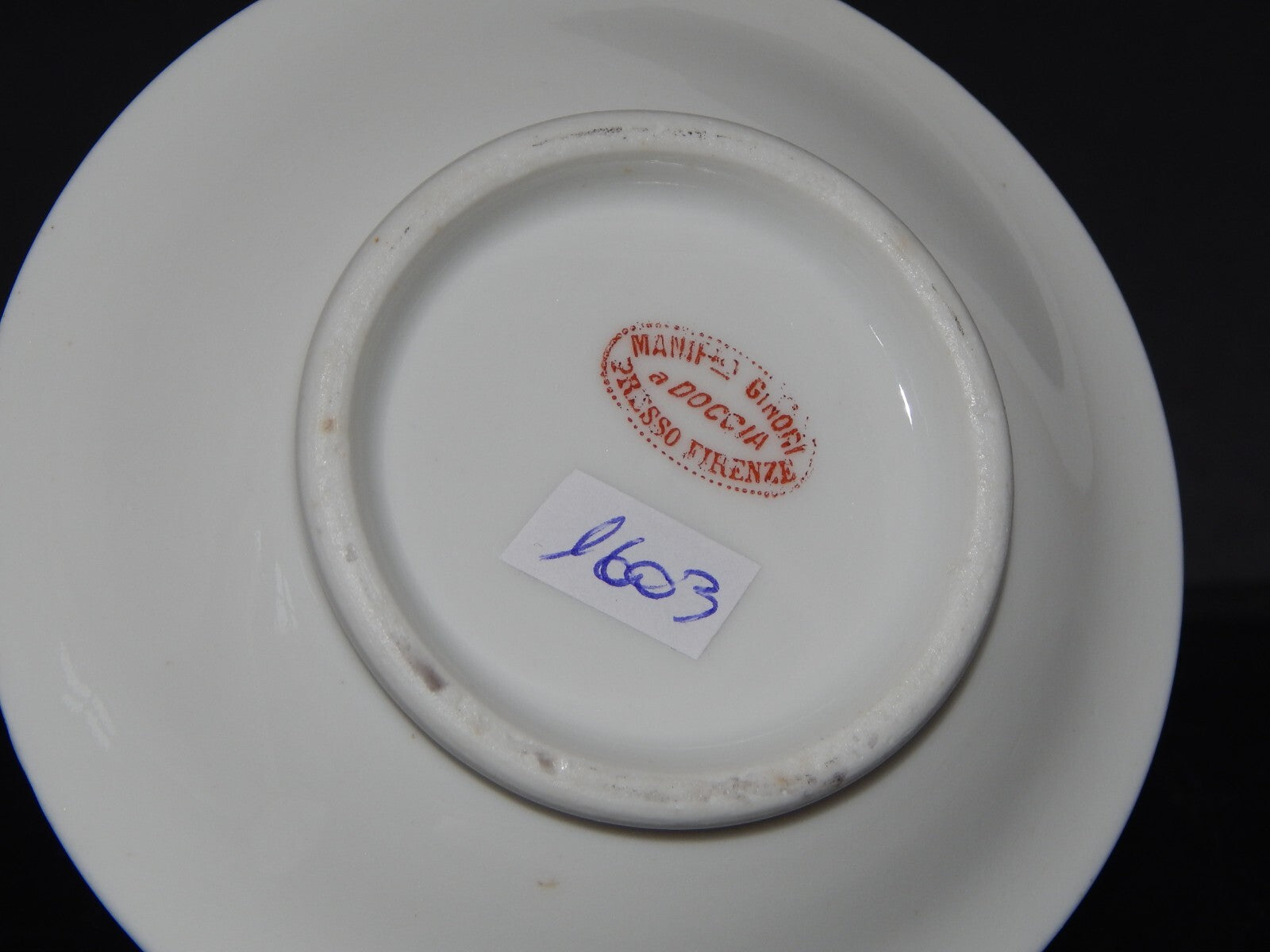 La salsiera in stile impero decorata a mano nello stabilimento Ginori a Doccia misura cm 6,5 cm di diametro e 10 cm di altezza il piatto alla base misura 10 cm di diametro
