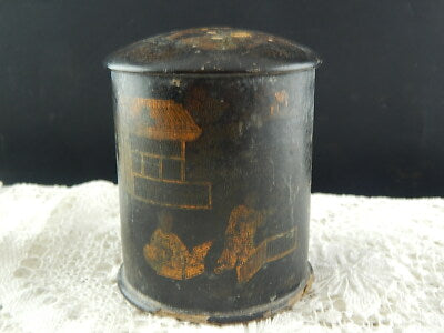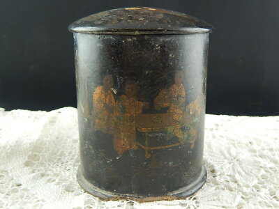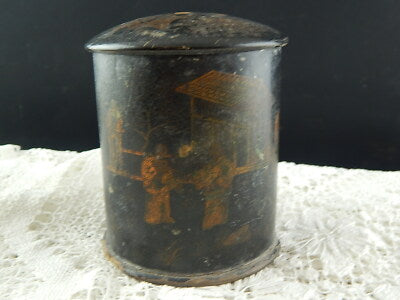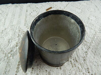 In questa inserzione viene presentata un'antica scatola o cofanetto in carta pesta francese risalente al 1800, la scatola fatta e decorata a mano con disegni ispirati all’oriente misura 8 cm di diametro e 10,5 cm di altezza.