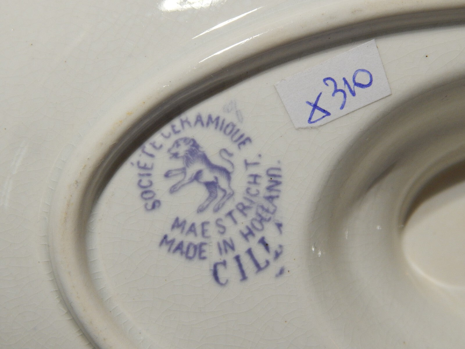 In questa inserzione viene presentata una salsiera in ceramica realizzata all'inizio del 1900 dalla manifattura olandese di Maastricht Societè Ceramique