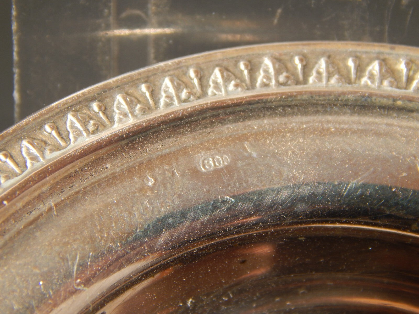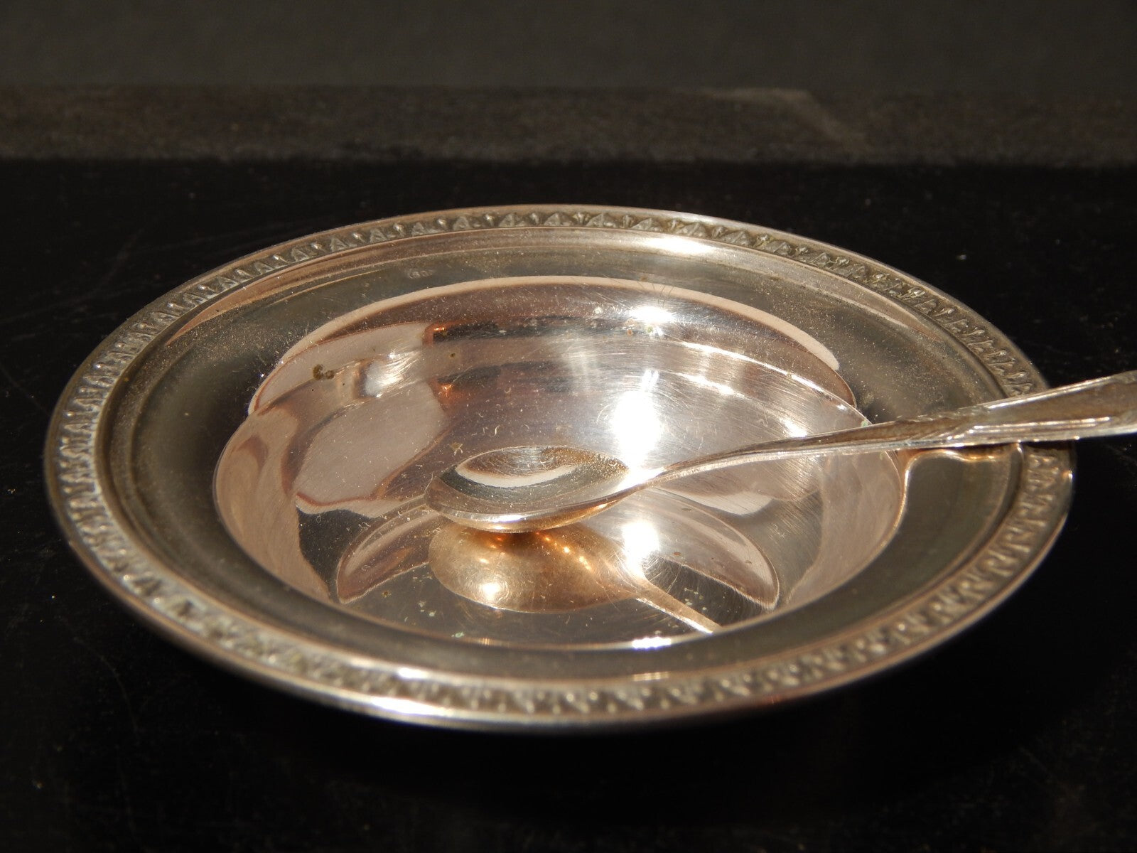 In questa inserzione viene presentata un'antica saliera da tavola con cucchiaino realizzata in argento 800 da una argenteria italiana