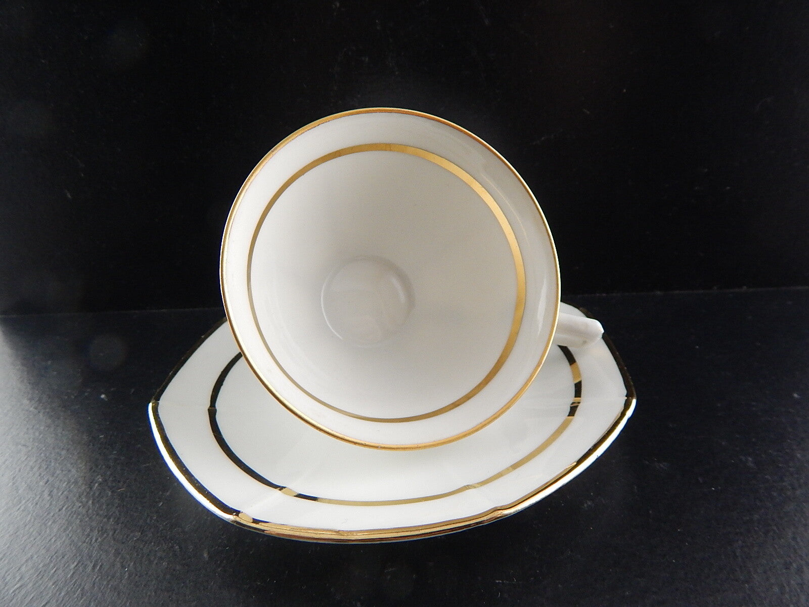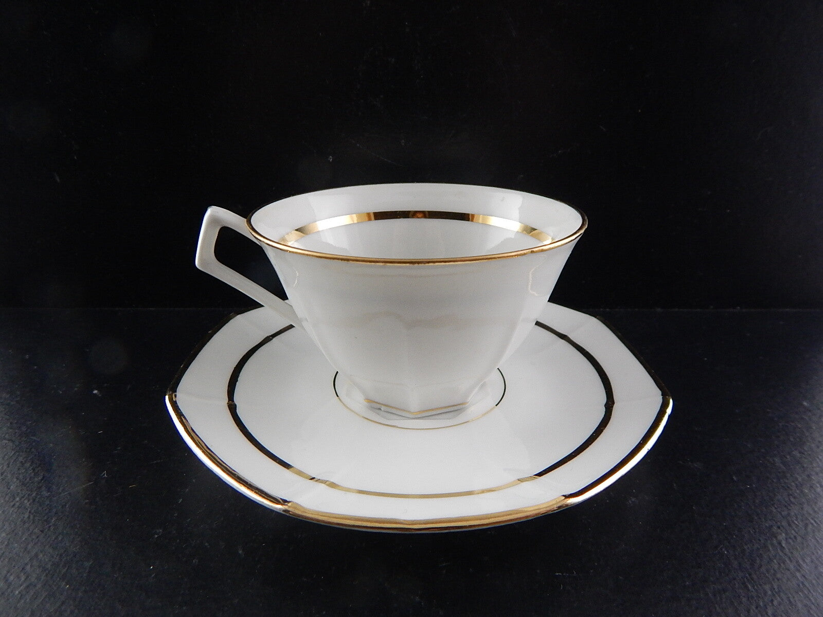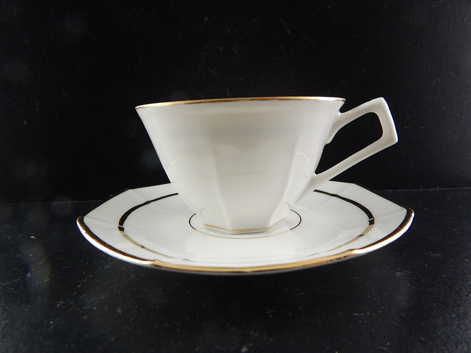 ANTICA TAZZA CAFFÈ CON PIATTINO ART DECO LIMOGES PORCELLANA BIANCA E ORO