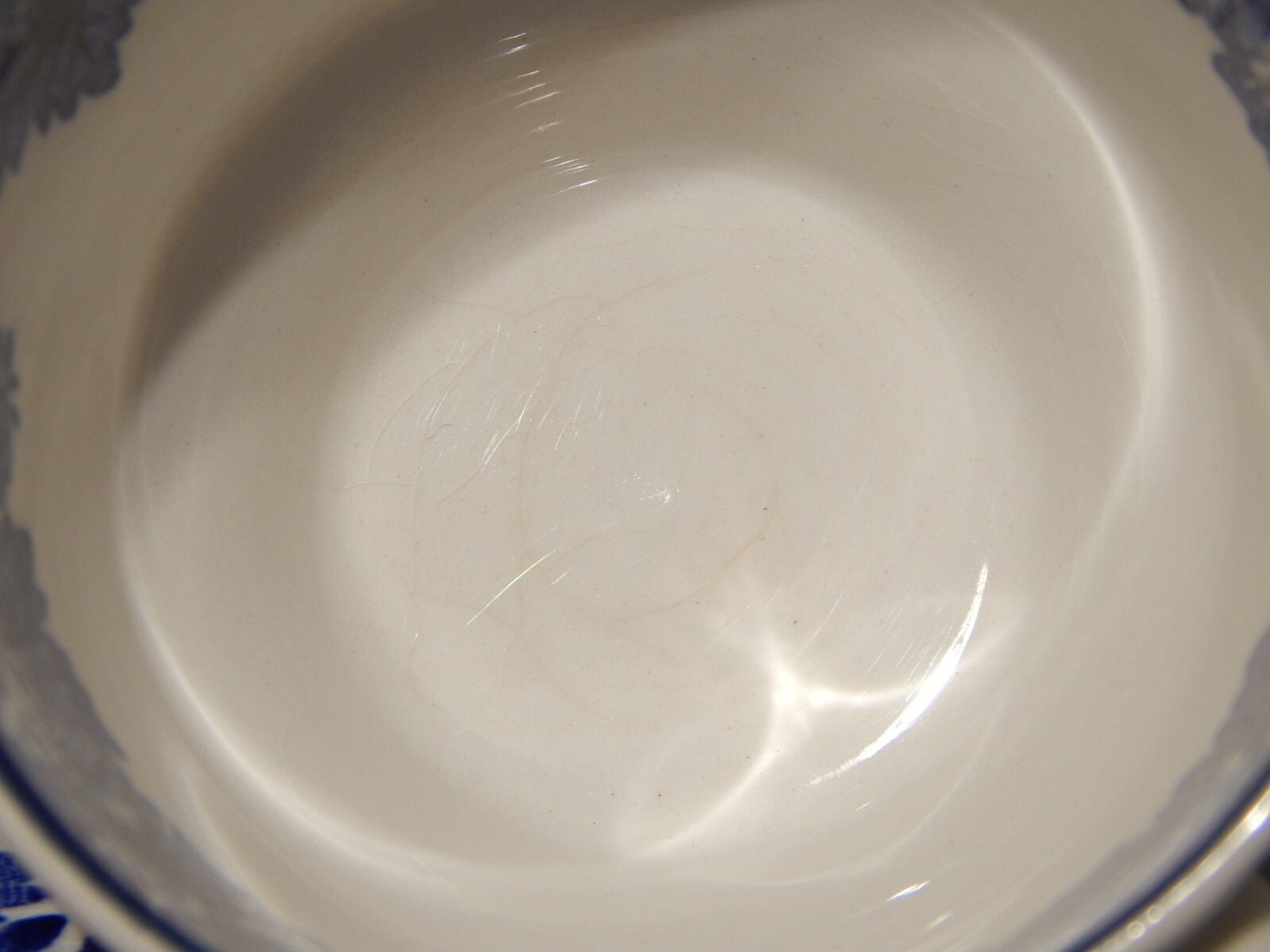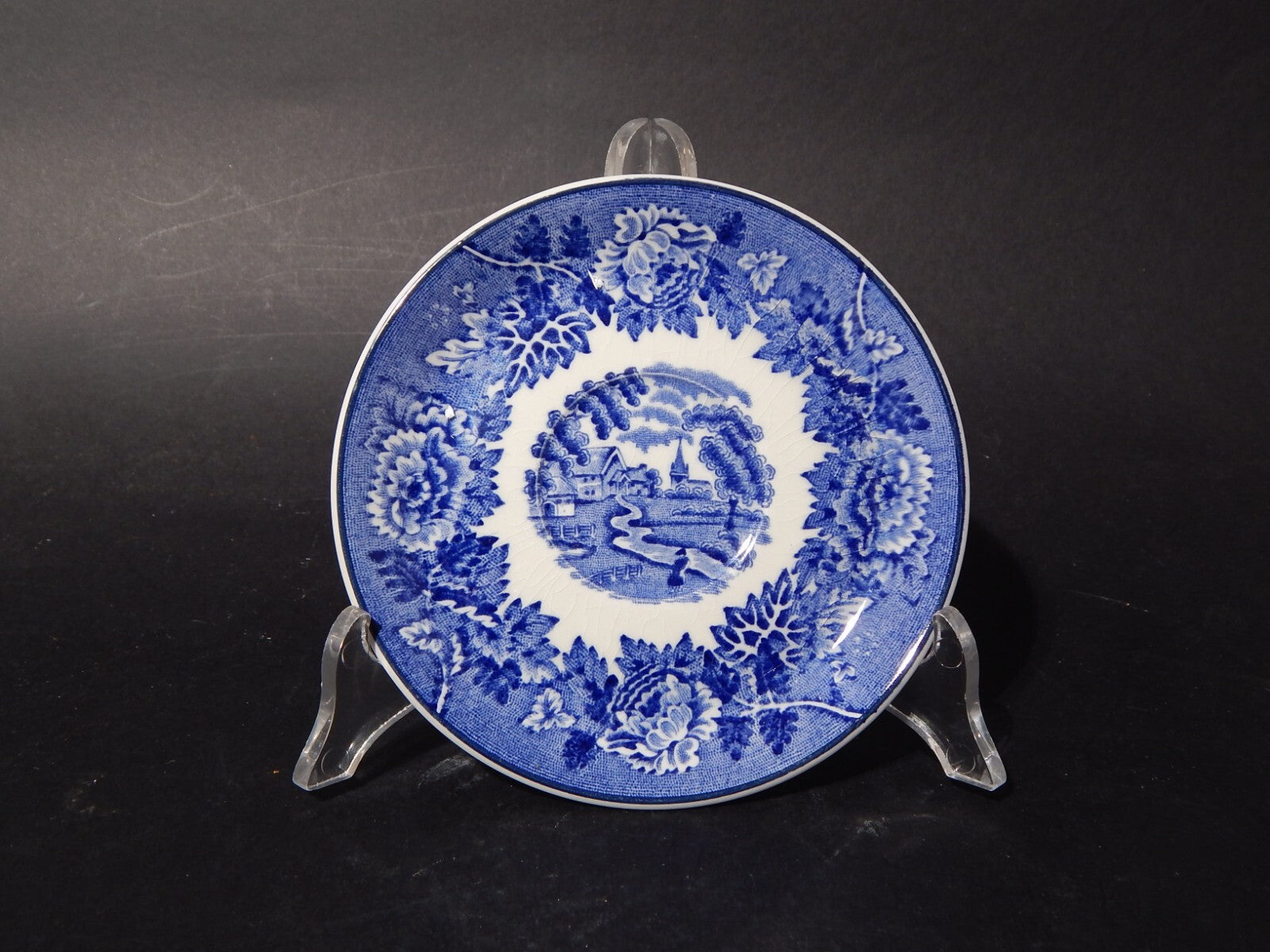 La tazza con decoro English Scenery blu misura 6 cm. di altezza e 8 cm. di diametro, il piattino 12,5 cm di diametro, sono presenti piccoli segni sul fondo della tazza