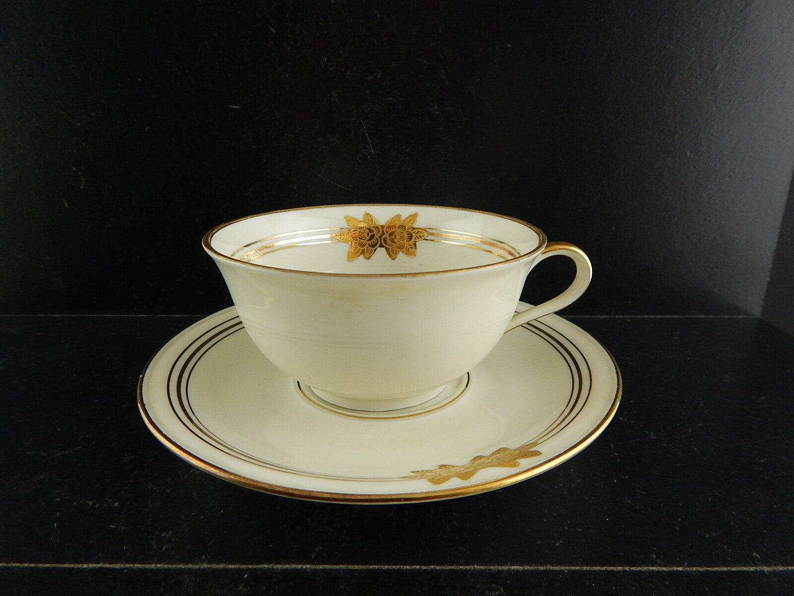 ANTICA TAZZA DA TÈ ART DECO PORCELLANA AVORIO ROSE ORO BAVARIA OSCAR SCHALLER
