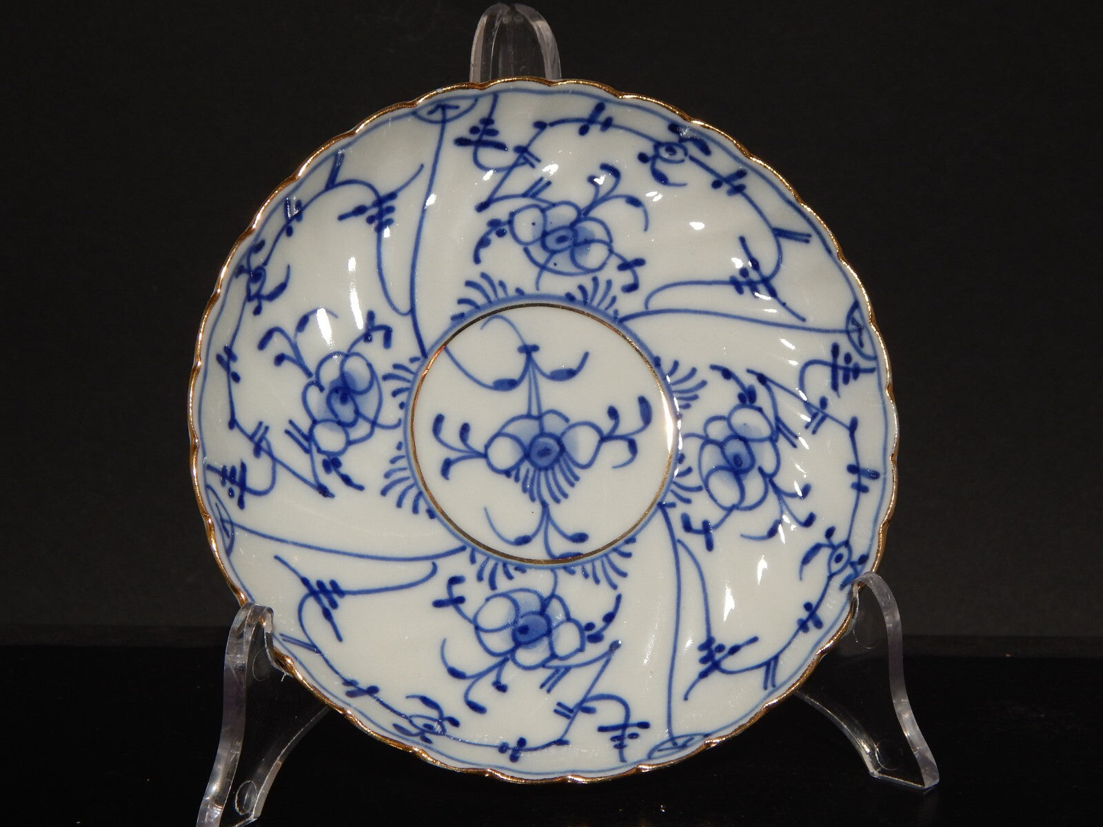 ANTICA TAZZA DA TE' PORCELLANA ROYAL TETTAU BLUE FLUTED BIANCO BLU PROFILO ORO