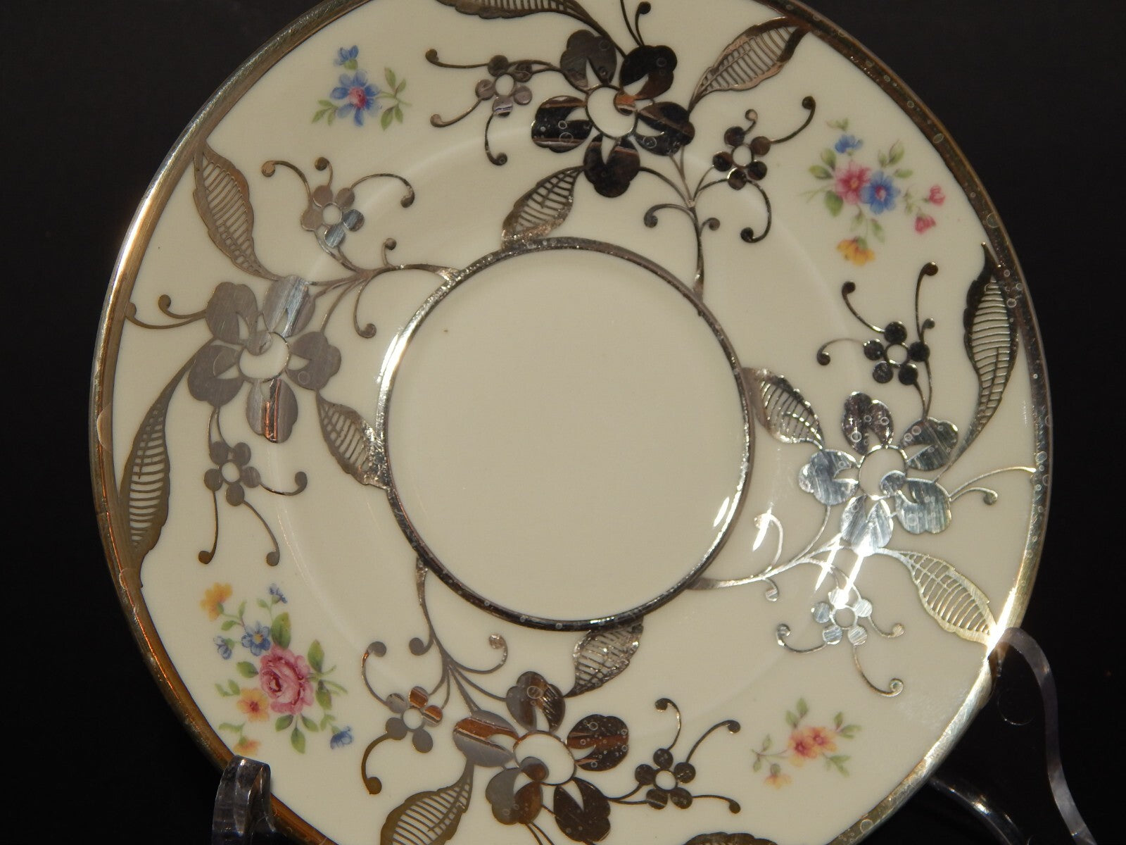 In questa inserzione viene presentata una tazza da tè con relativo piattino di porcellana di altissima qualità color avorio decorata con disegni floreali in argento e fiorellini policromi, il set è stato realizzato a metà del 1900 dalla manifattura tedesca Vohenstrauss Bavaria Johann Seltmann
