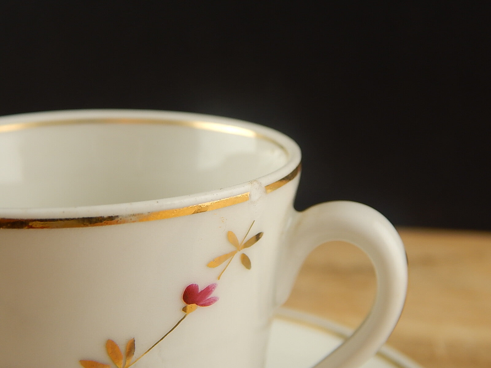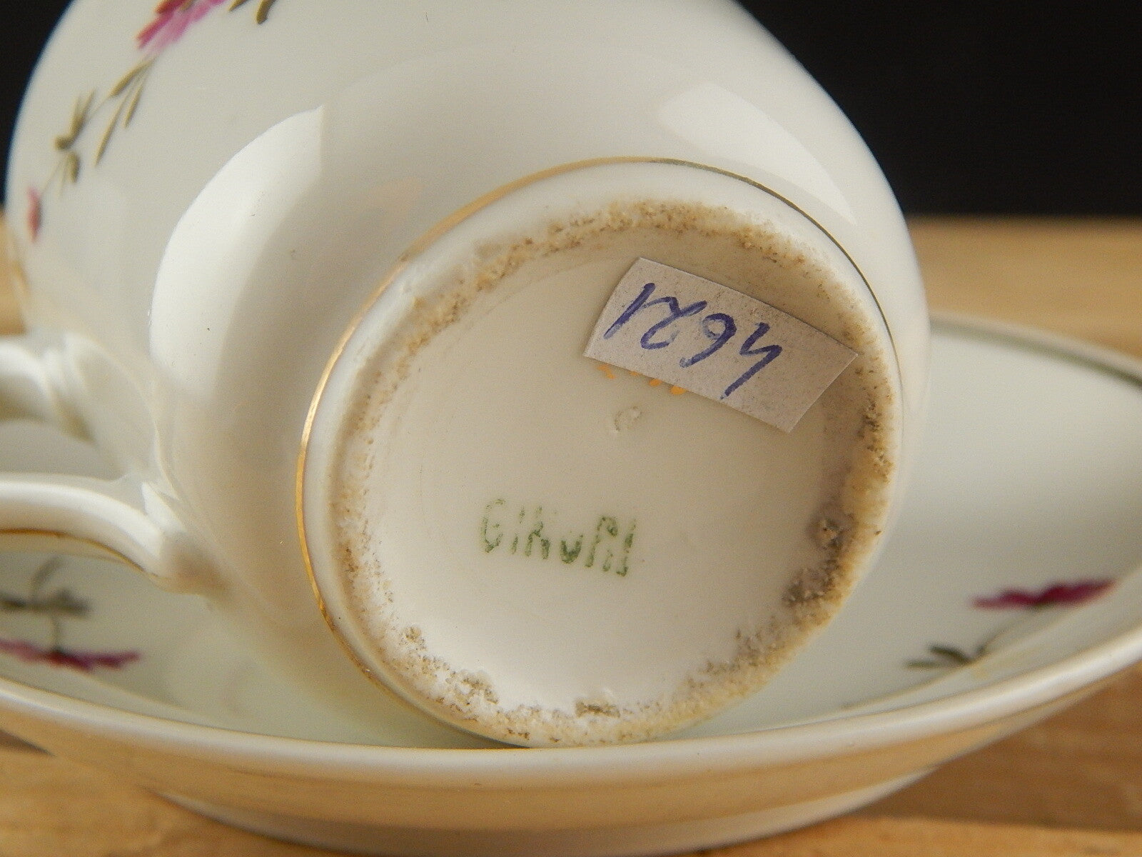 ANTICA TAZZA E PIATTINO PORCELLANA GINORI ART NOUVEAU DIPINTA A MANO DIFETTO