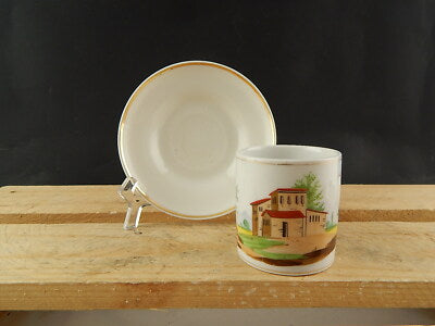 In questa inserzione viene presentata una tazza con il suo piattino in porcellana realizzata in Francia all'inizio del 1800 decorata a mano policroma e rifinita in oro zecchino