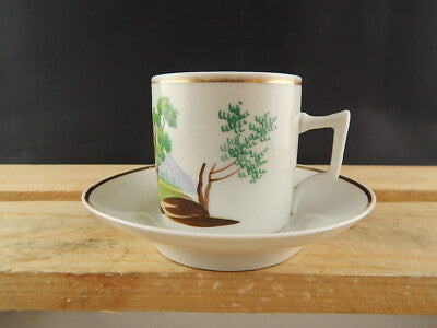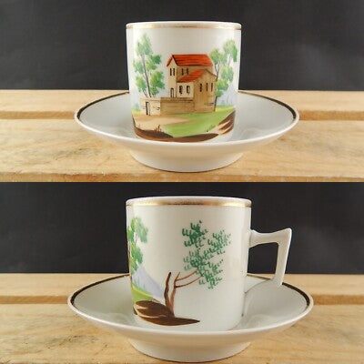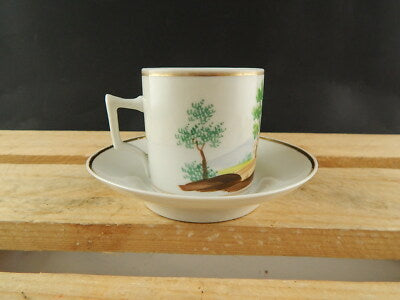 In questa inserzione viene presentata una tazza con il suo piattino in porcellana realizzata in Francia all'inizio del 1800 decorata a mano policroma e rifinita in oro zecchino