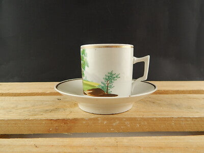 ANTICA TAZZA E PIATTO PORCELLANA IMPERO VECCHIO PARIGI DIPINTA POLICROMA #4817