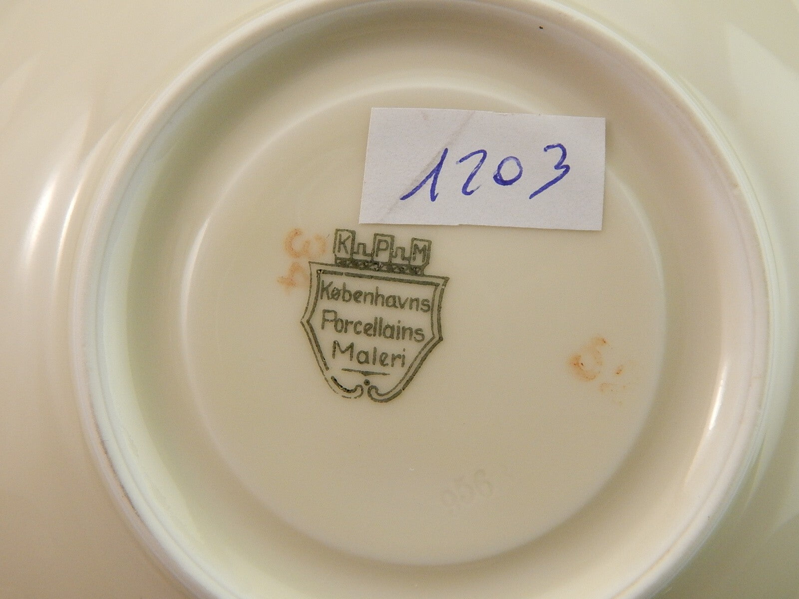 In questa inserzione viene presentata un'antica tazza con relativo piattino in porcellana risalente al 1924 realizzata dalla rinomata manifattura danese KPM