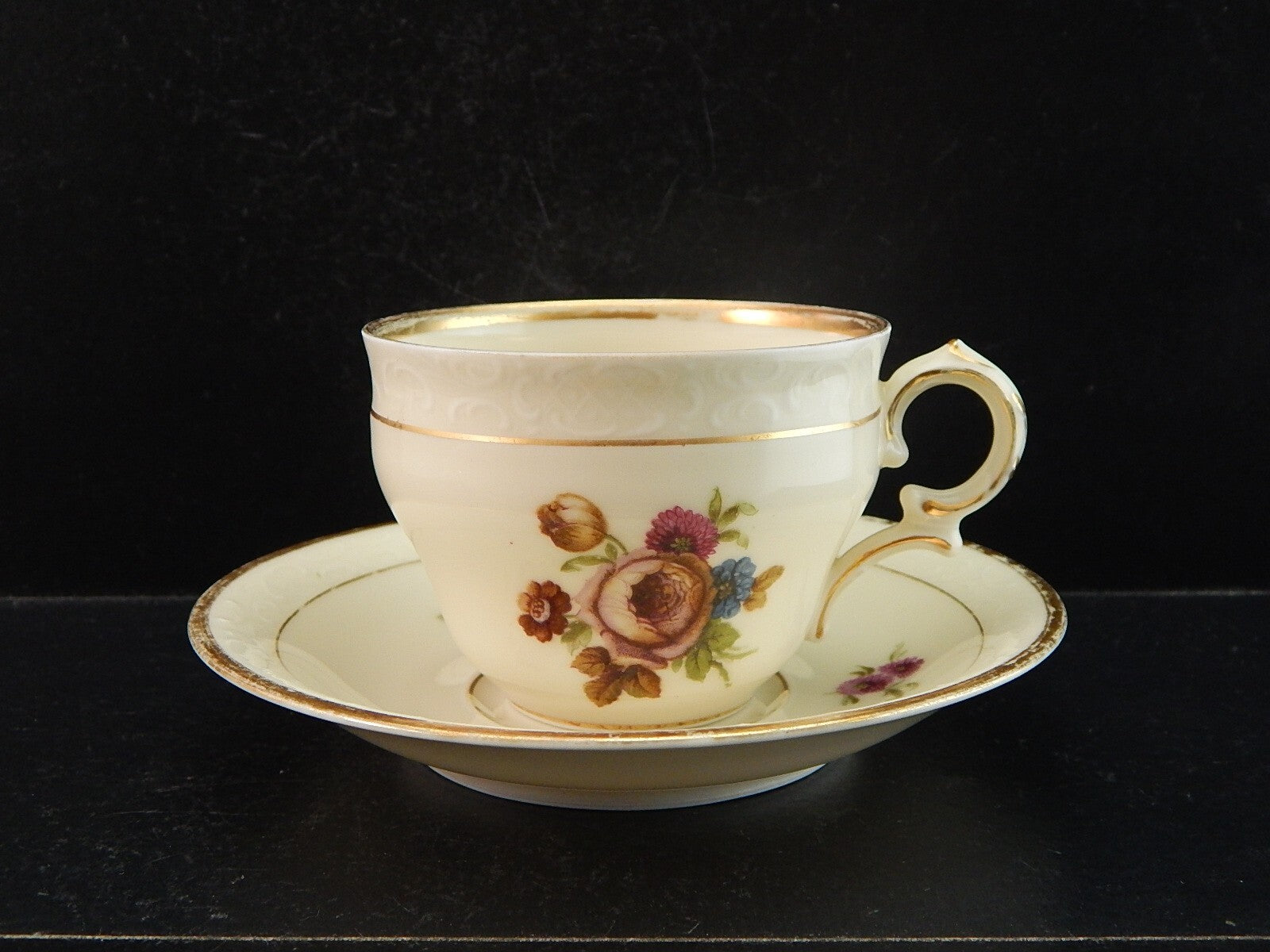 ANTICA TAZZA KPM COPENHAGEN PORCELLANA DECORO BOUQUET DI FIORI E ORO DEL 1924