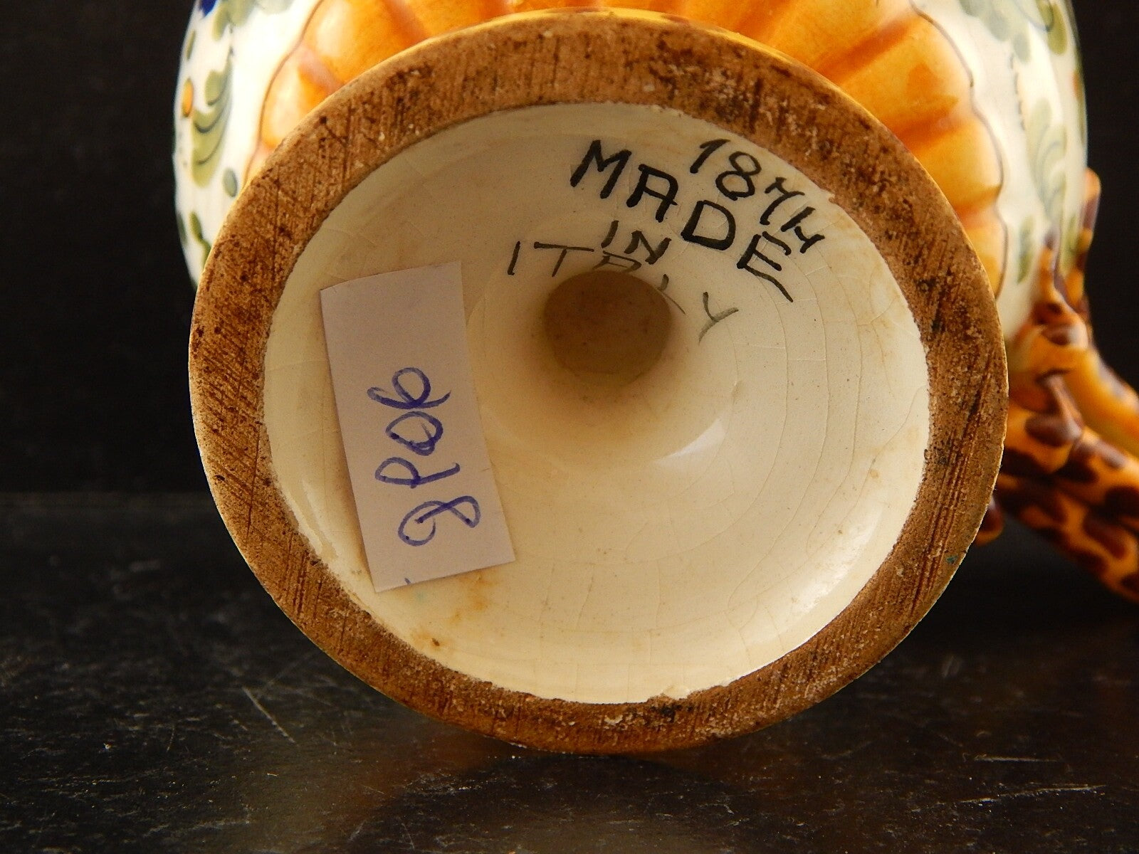 ANTICA TAZZA MAIOLICA CERAMICA POLICROMA FANTECHI ANSA A SERPE PRIMO 900 DIFETTI