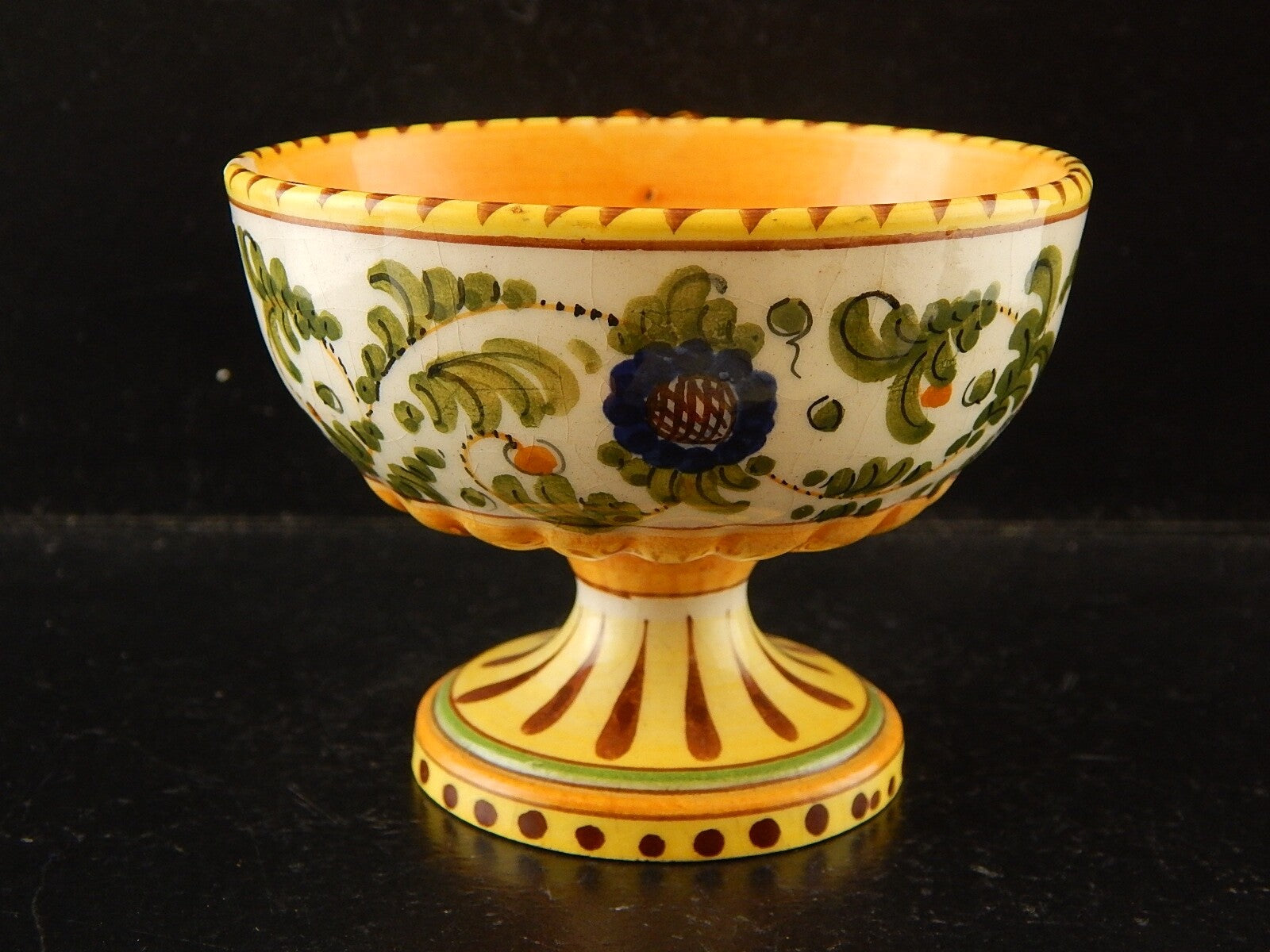 ANTICA TAZZA MAIOLICA CERAMICA POLICROMA FANTECHI ANSA A SERPE PRIMO 900 DIFETTI