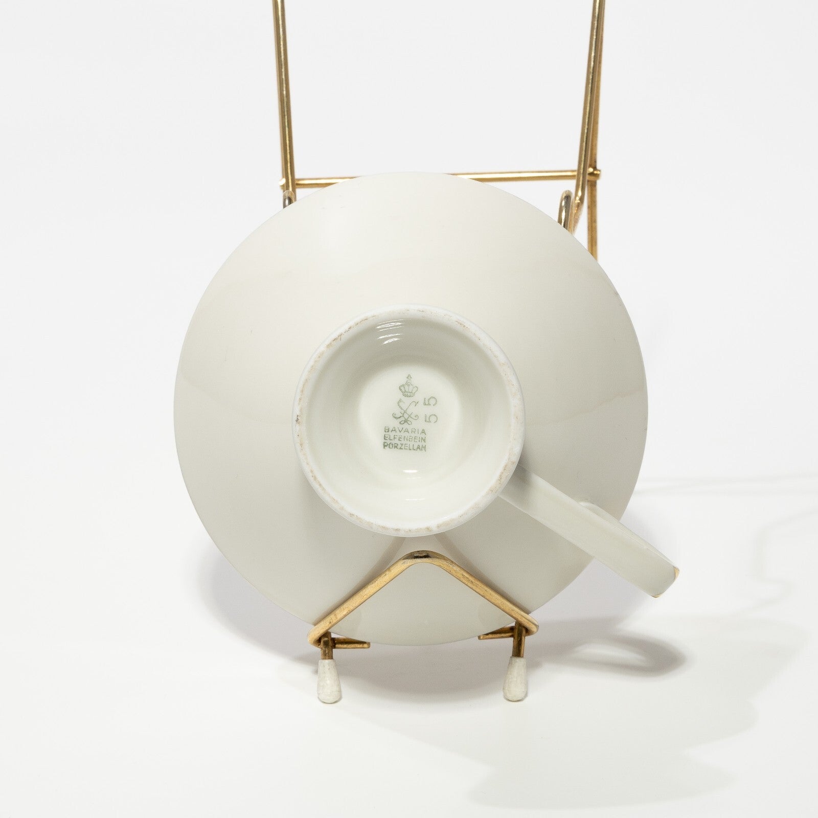 In questa inserzione viene presentata una tazza da tè realizzata dalla famosa Manifattura tedesca Oscar Schaller Bavaria negli anni trenta, come si evince dal marchio sotto la base. La tazza realizzata in porcellana color avorio, è stata decorata in oro zecchino e con un disegno floreale all'interno sul fondo della tazza