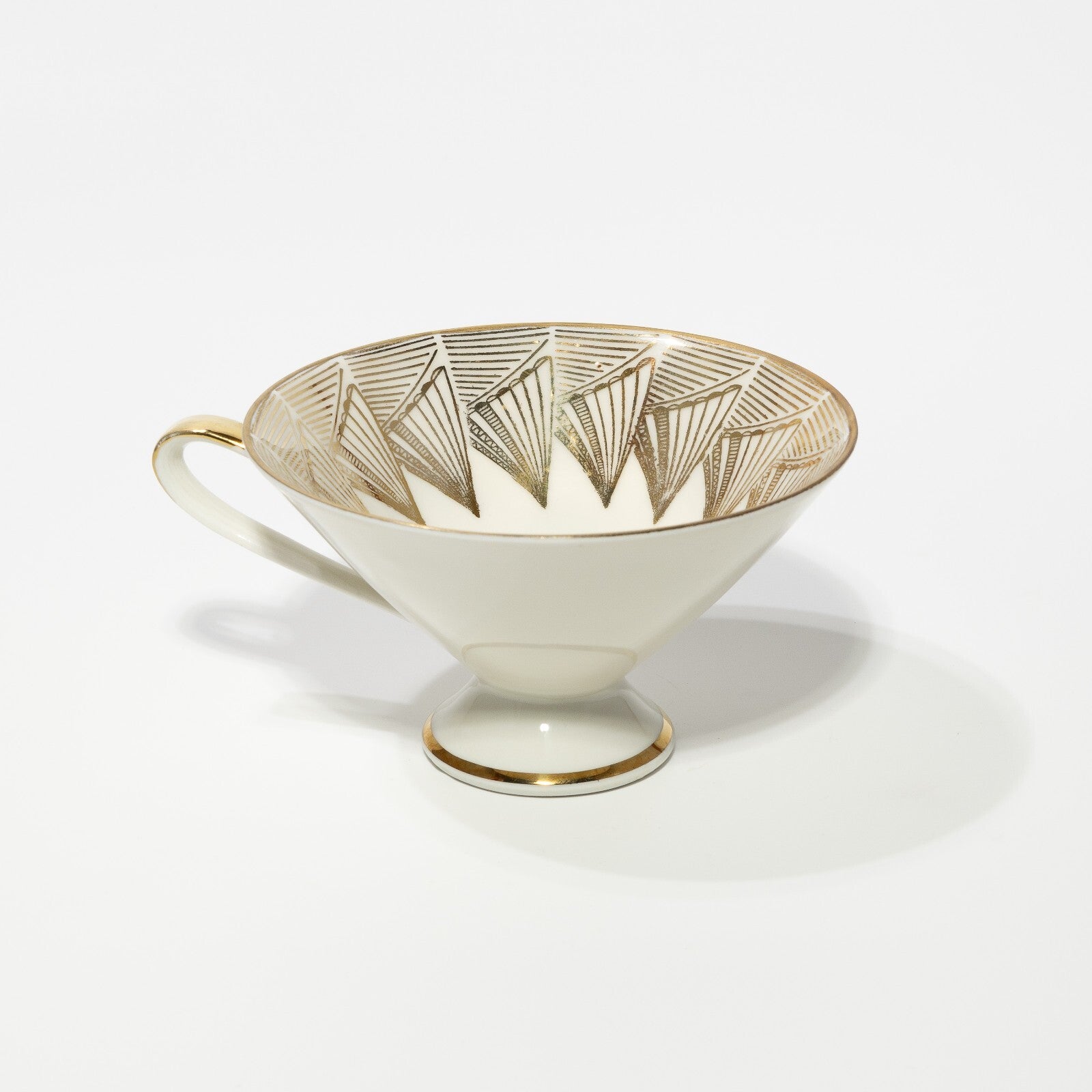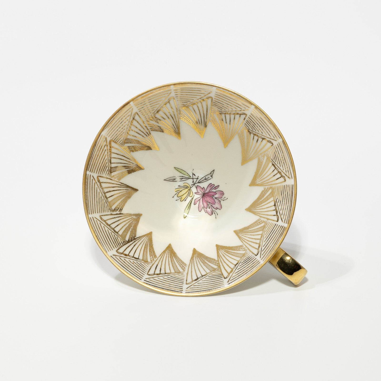 ANTICA TAZZA TÈ ART DECO PORCELLANA BAVARIA OSCAR SCHALLER DECORO ORO