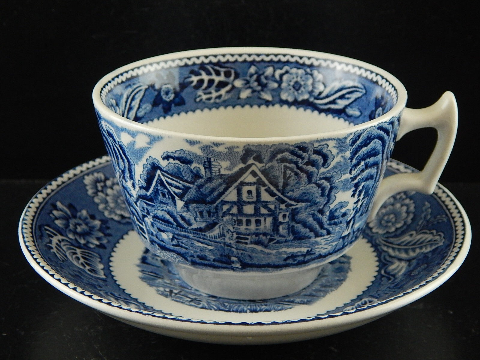 La tazza con decoro Woodland blu misura 6 cm. di altezza e 9,5 cm. di diametro, il piattino 14,5 cm di diametro