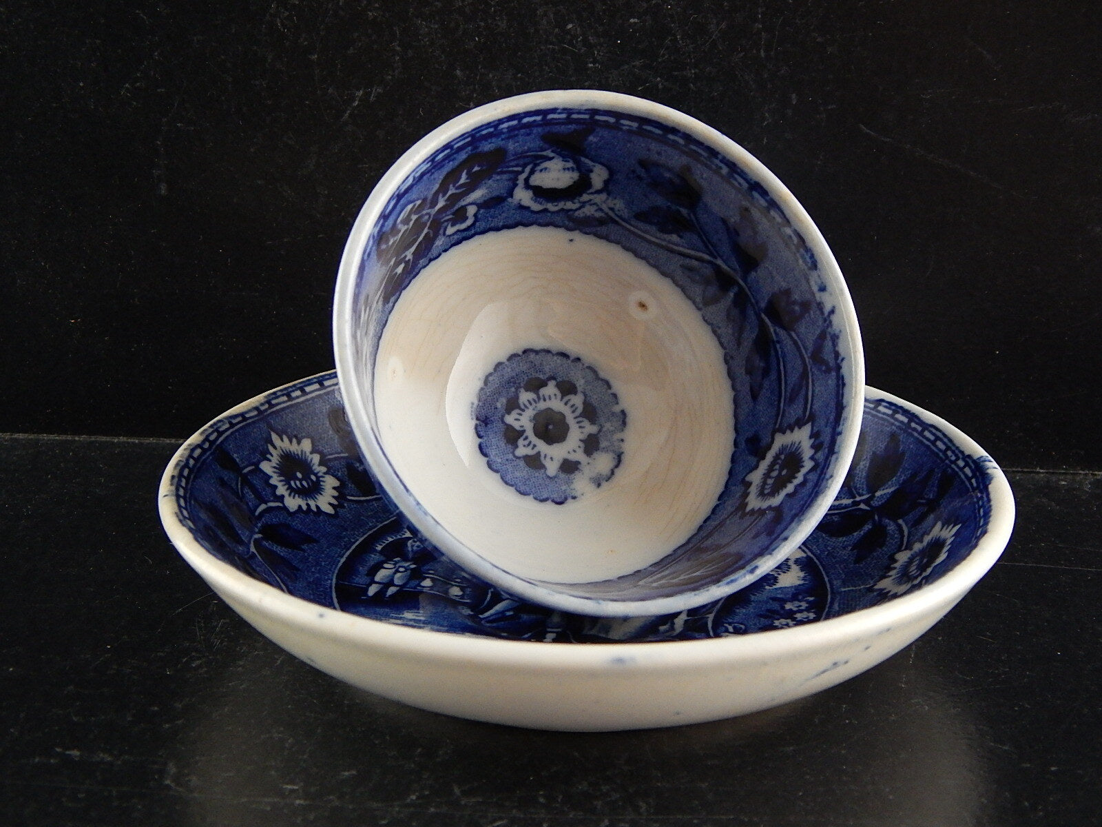 ANTICA TAZZA TE' E PIATTINO CERAMICA MAASTRICHT P. REGOUT TEA DRINKER META' 800