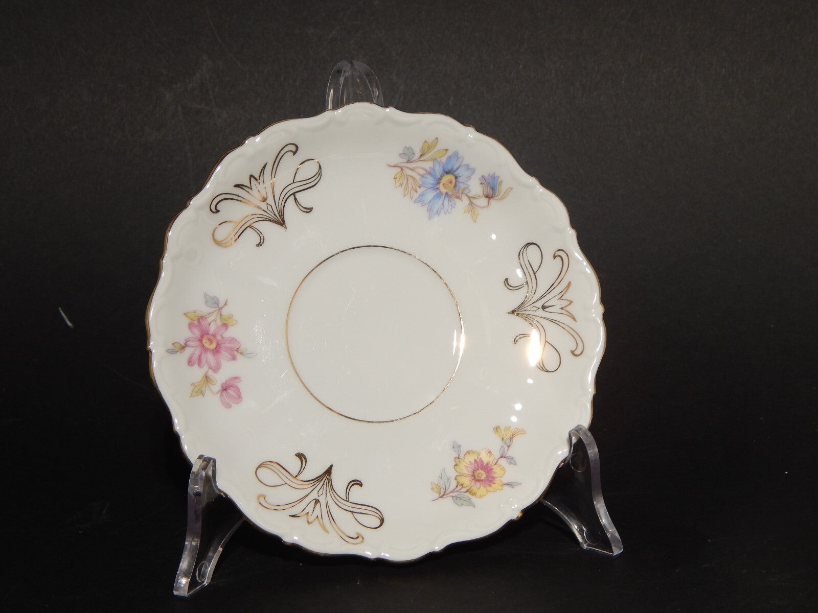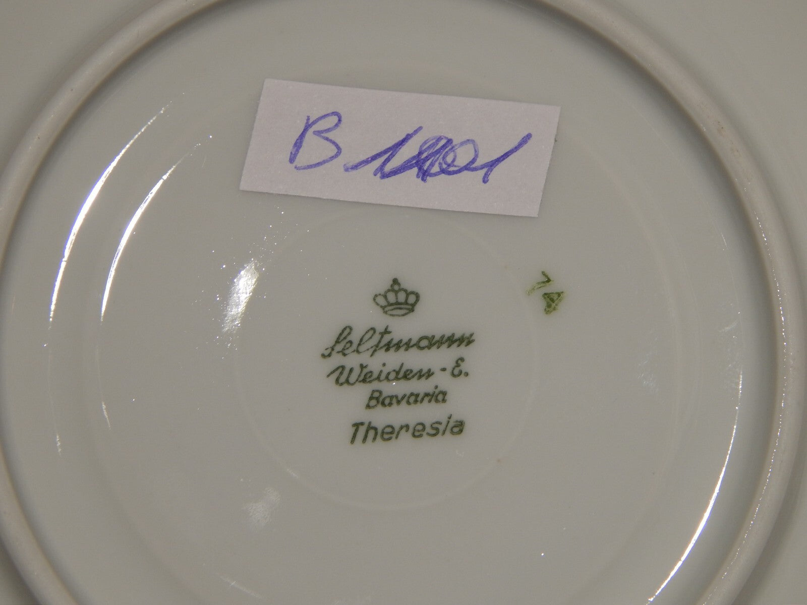 In questa inserzione viene presentata una tazza antica con piattino, realizzata negli anni '40 dalla manifattura tedesca Bavaria Seltmann Weiden-E nel modello Theresia in porcellana bianca con decoro floreale
