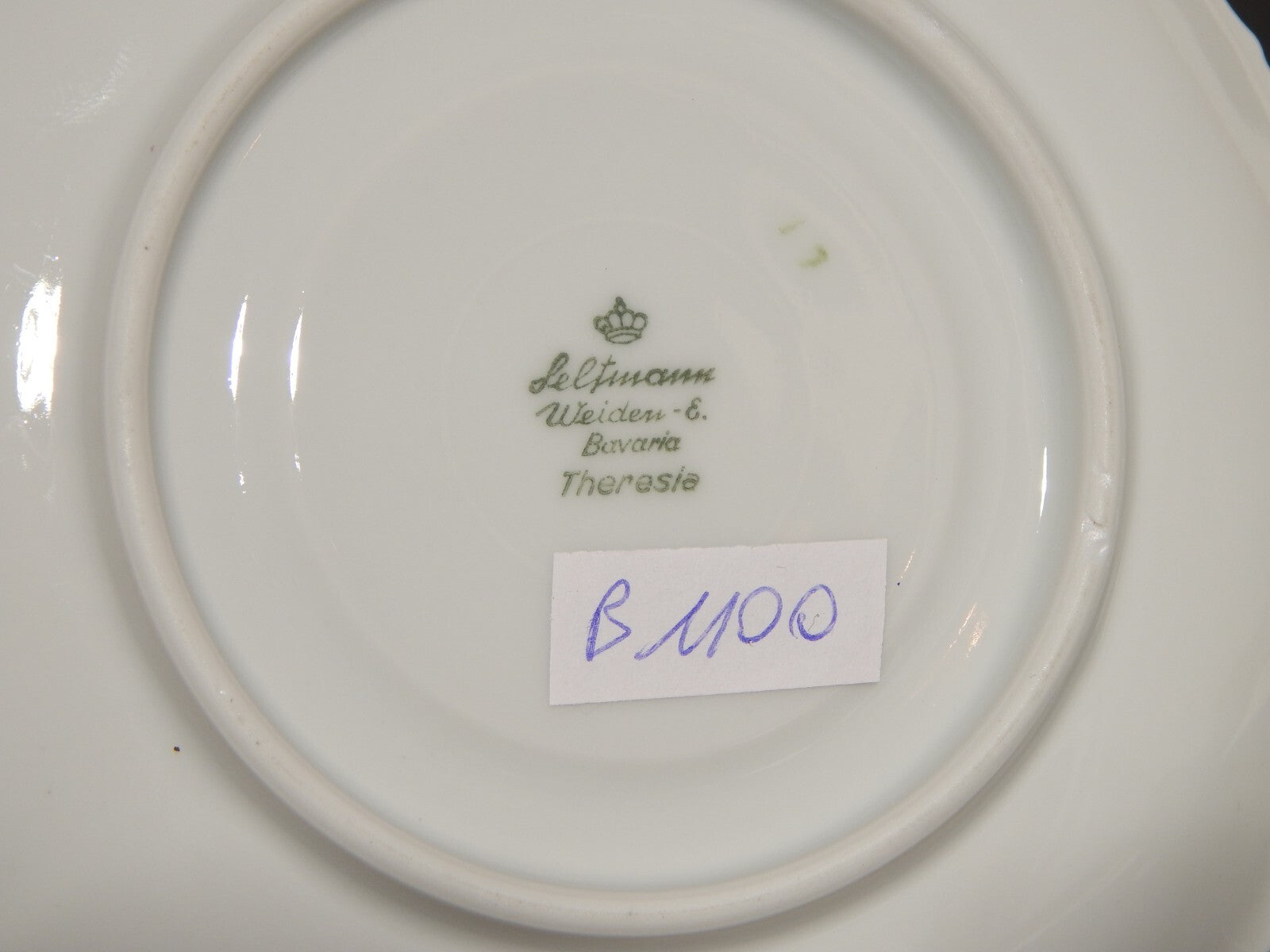 In questa inserzione viene presentata una tazza antica con piattino, realizzata negli anni '40 dalla manifattura tedesca Bavaria Seltmann Weiden-E nel modello Theresia in porcellana bianca con decoro floreale