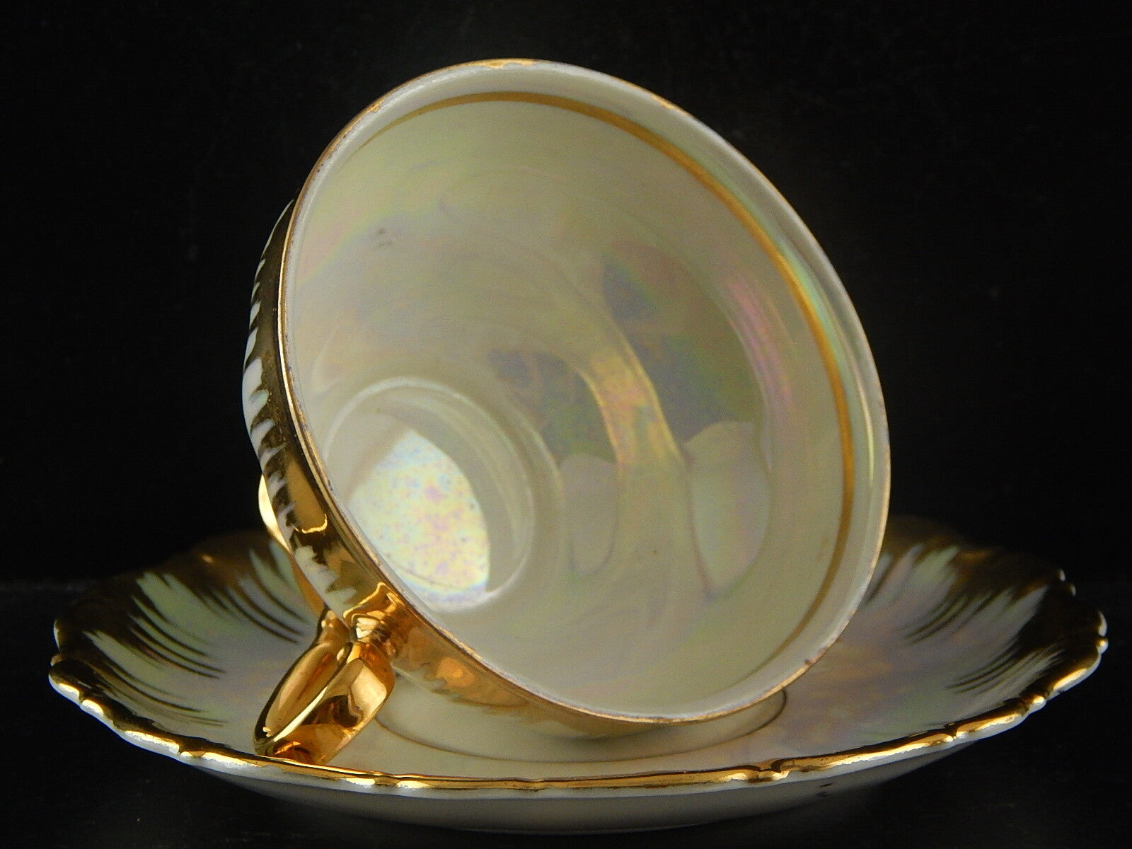 ANTICA TAZZA TE' PORCELLANA DECORO MADRE PERLA E ORO BAVARIA SELTMANN THERESIA