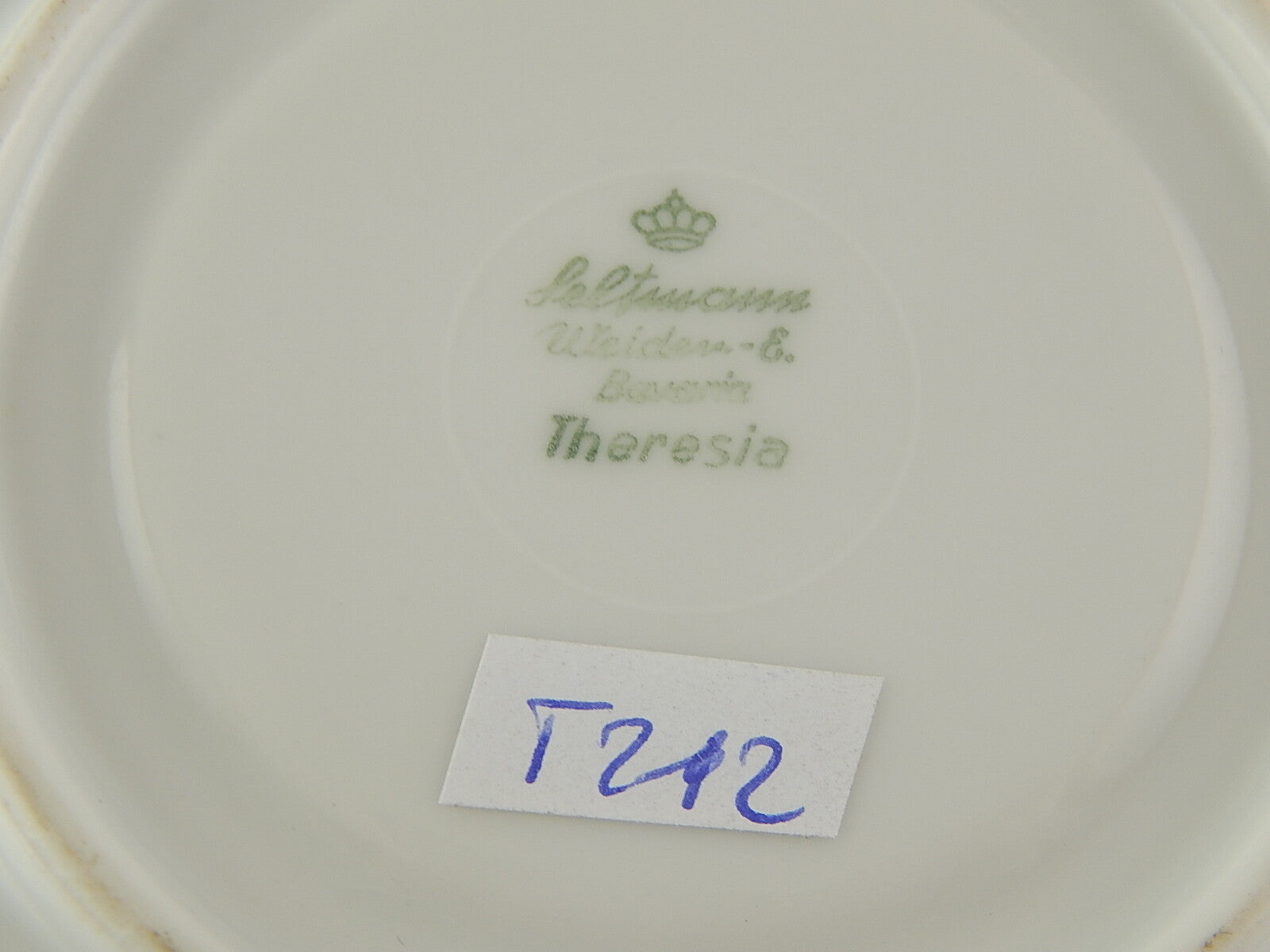 In questa inserzione viene presentata una tazza antica con piattino in porcellana, realizzata negli anni '40 dalla manifattura tedesca Bavaria Seltmann Weiden-E nel modello Theresia decorata a lustro in oro zecchino e madre perla
