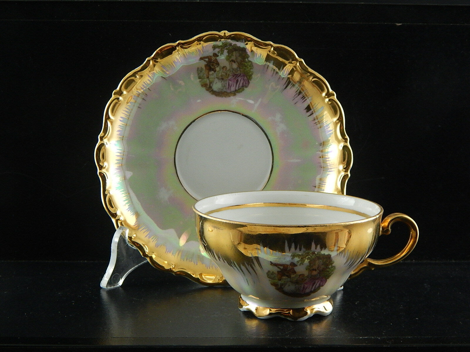 ANTICA TAZZA TE' PORCELLANA ORO BAVARIA SELTMANN THERESIA SCENA GALANTE WATTEAU