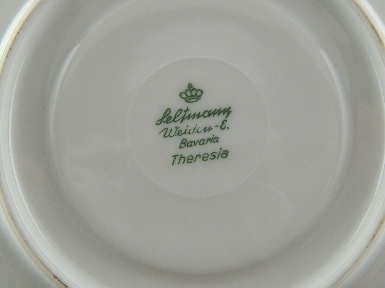 In questa inserzione viene presentata una tazza antica con piattino in porcellana, realizzata negli anni '40 dalla manifattura tedesca Bavaria Seltmann Weiden-E nel modello Theresia con scena galante tratta da un dipinto del famoso pittore francese Watteau e rifinita con oro zecchino