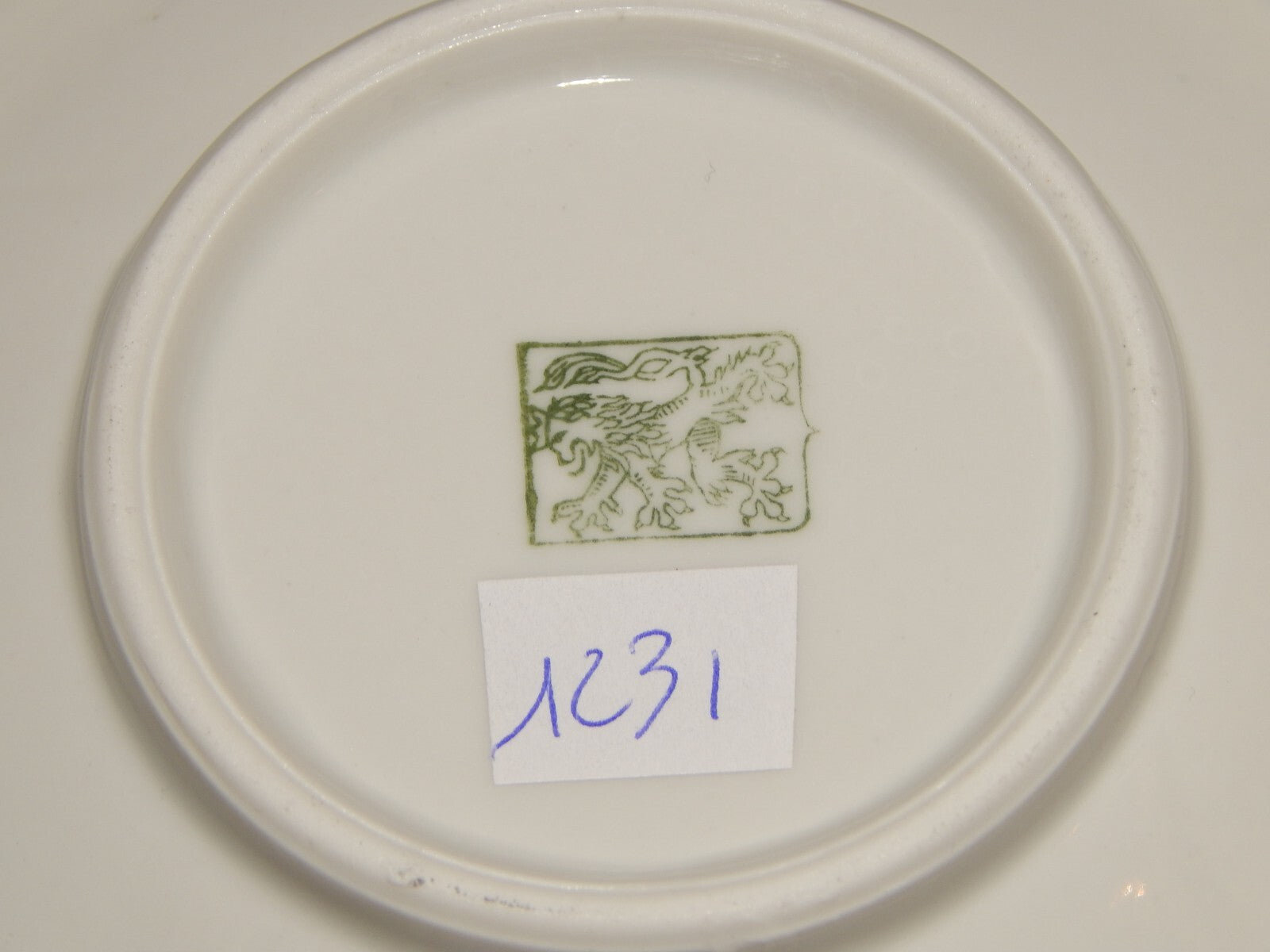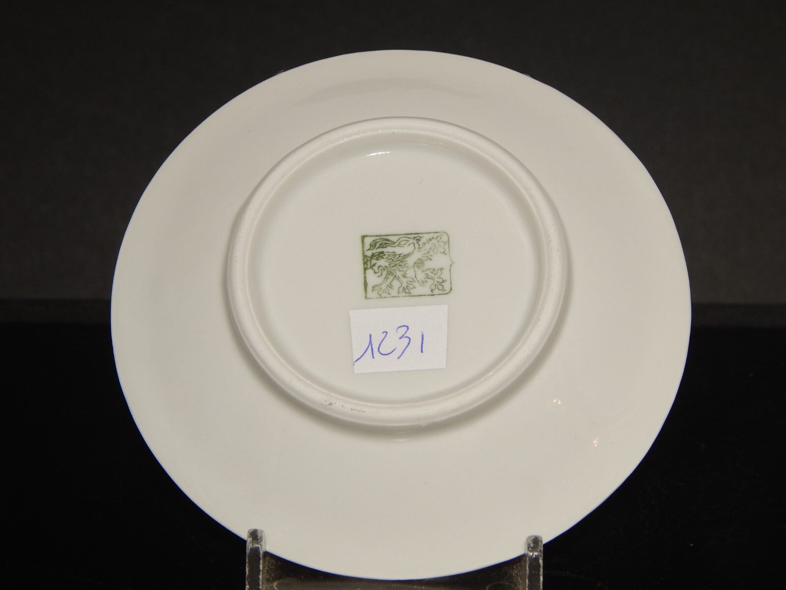 La tazzina di porcellana di ottima qualità reca un marchio che non siamo riusciti a identificare, sappiamo però che il decoro è stato usato sia dalla manifattura Richard Ginori che dalla manifattura tedesca Thomas appartenente al gruppo Rosenthal