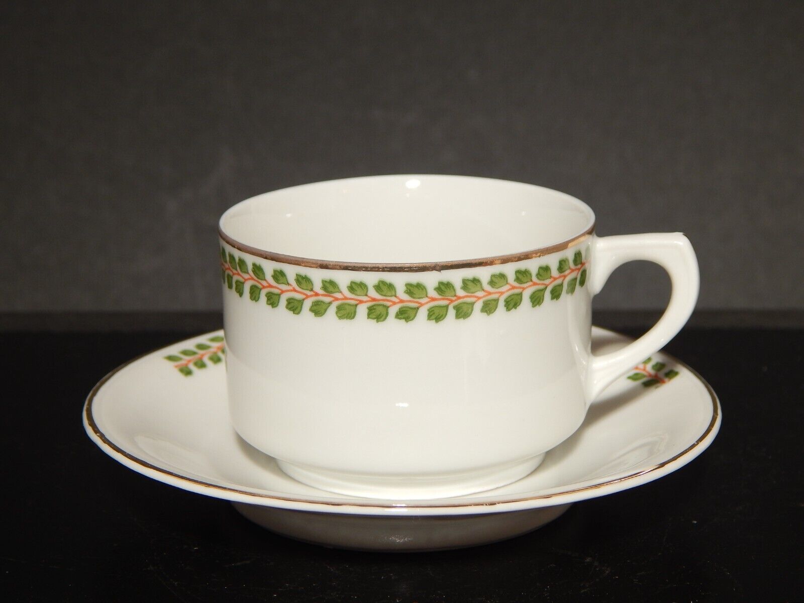 ANTICA IMPERO TAZZINA CAFFÈ PORCELLANA BIANCA GHIRLANDE PICCOLE FOGLIE VERDI