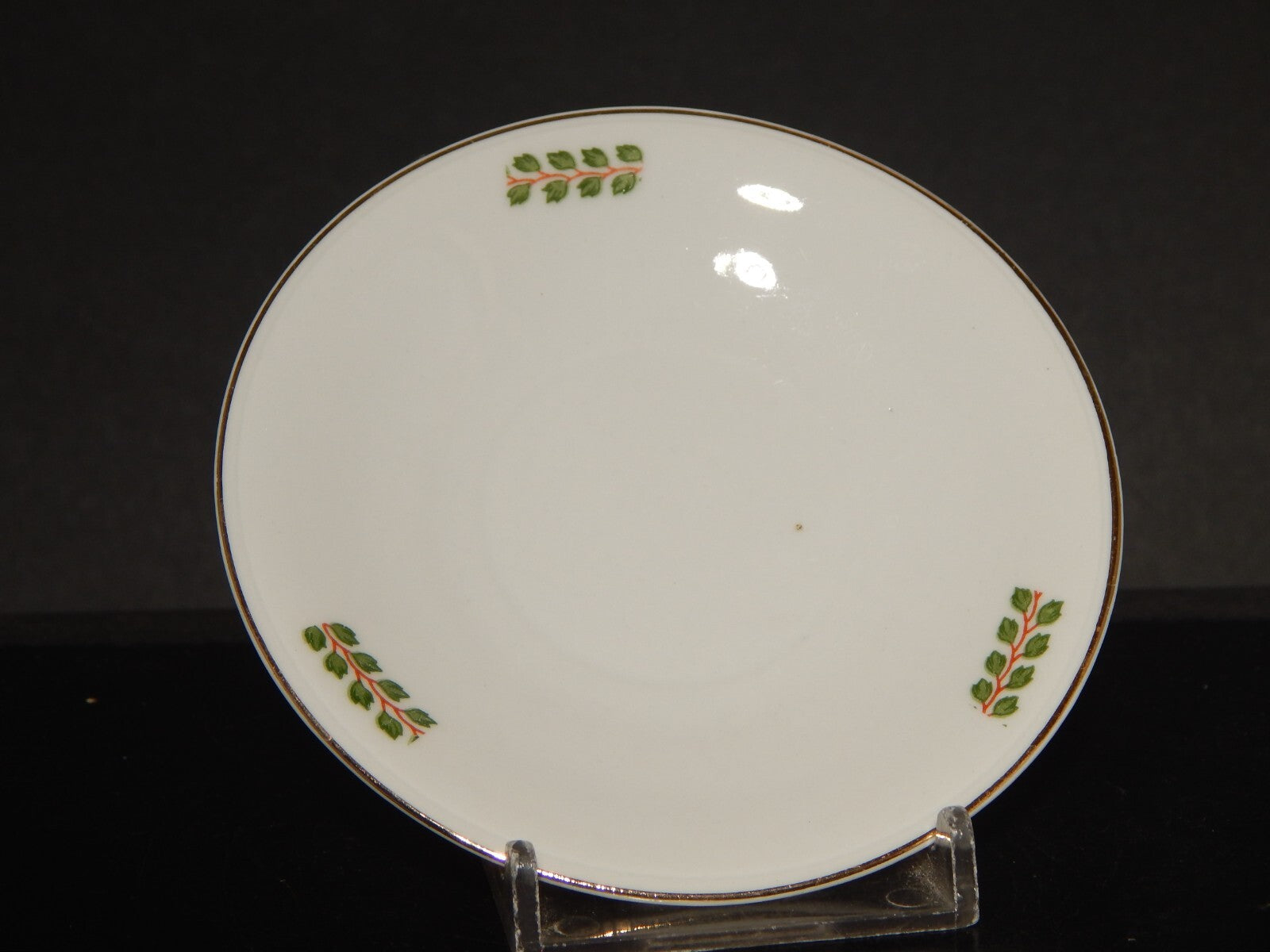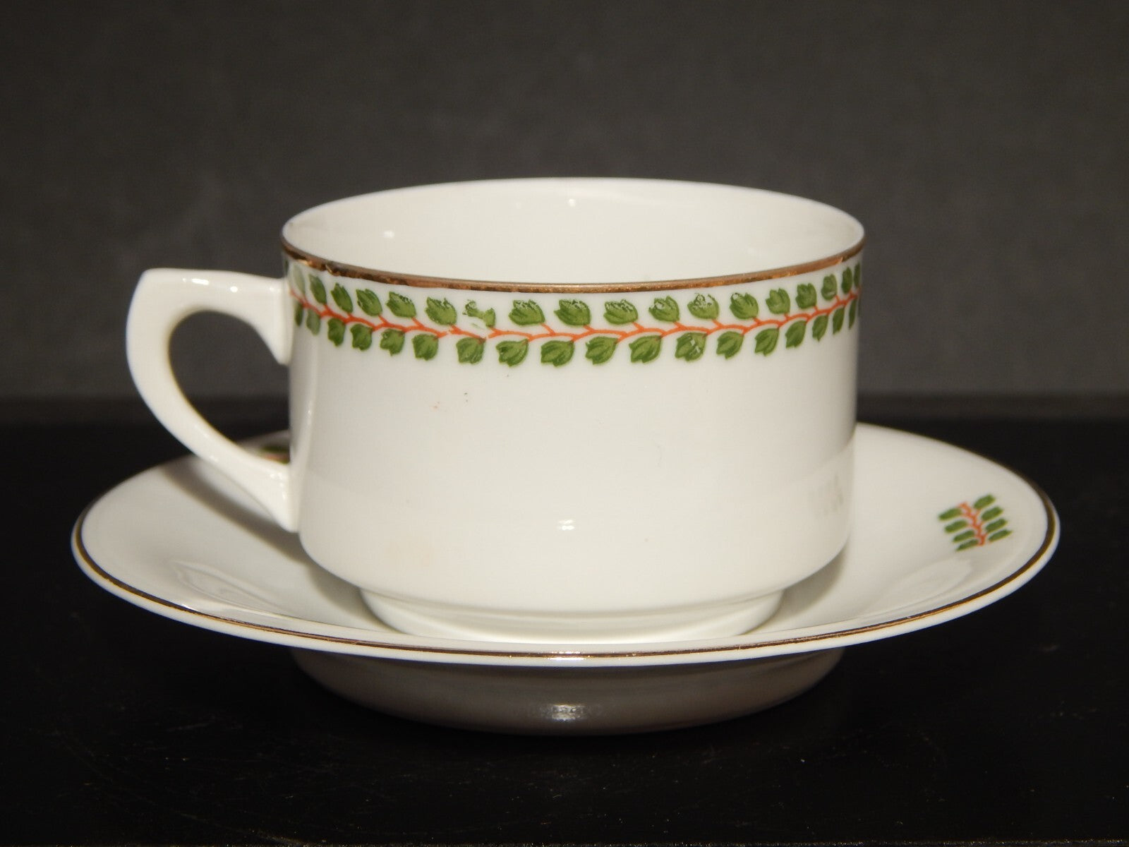 ANTICA TAZZINA CAFFÈ PORCELLANA BIANCA GHIRLANDE PICCOLE FOGLIE VERDI #1232