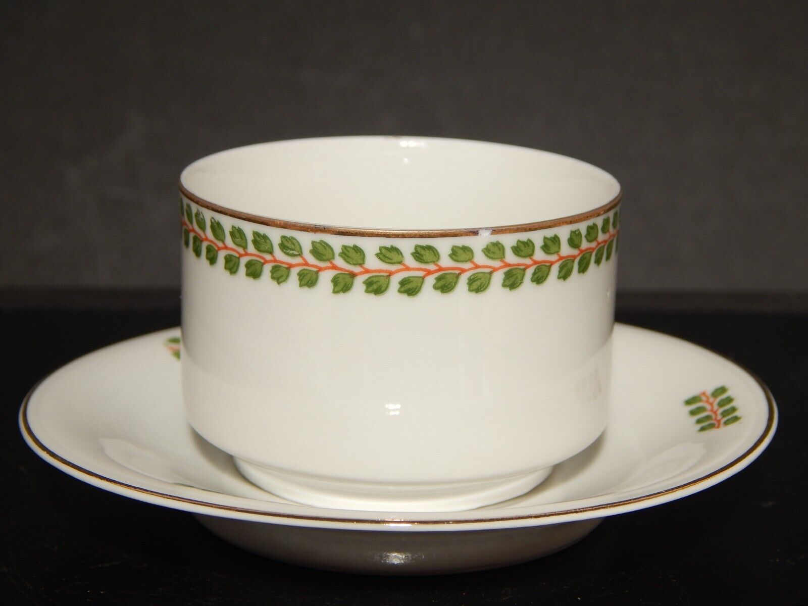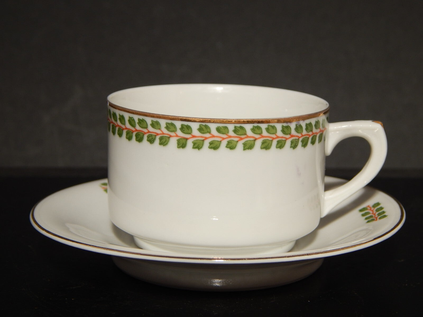 ANTICA IMPERO TAZZINA CAFFÈ PORCELLANA BIANCA GHIRLANDE PICCOLE FOGLIE VERDI