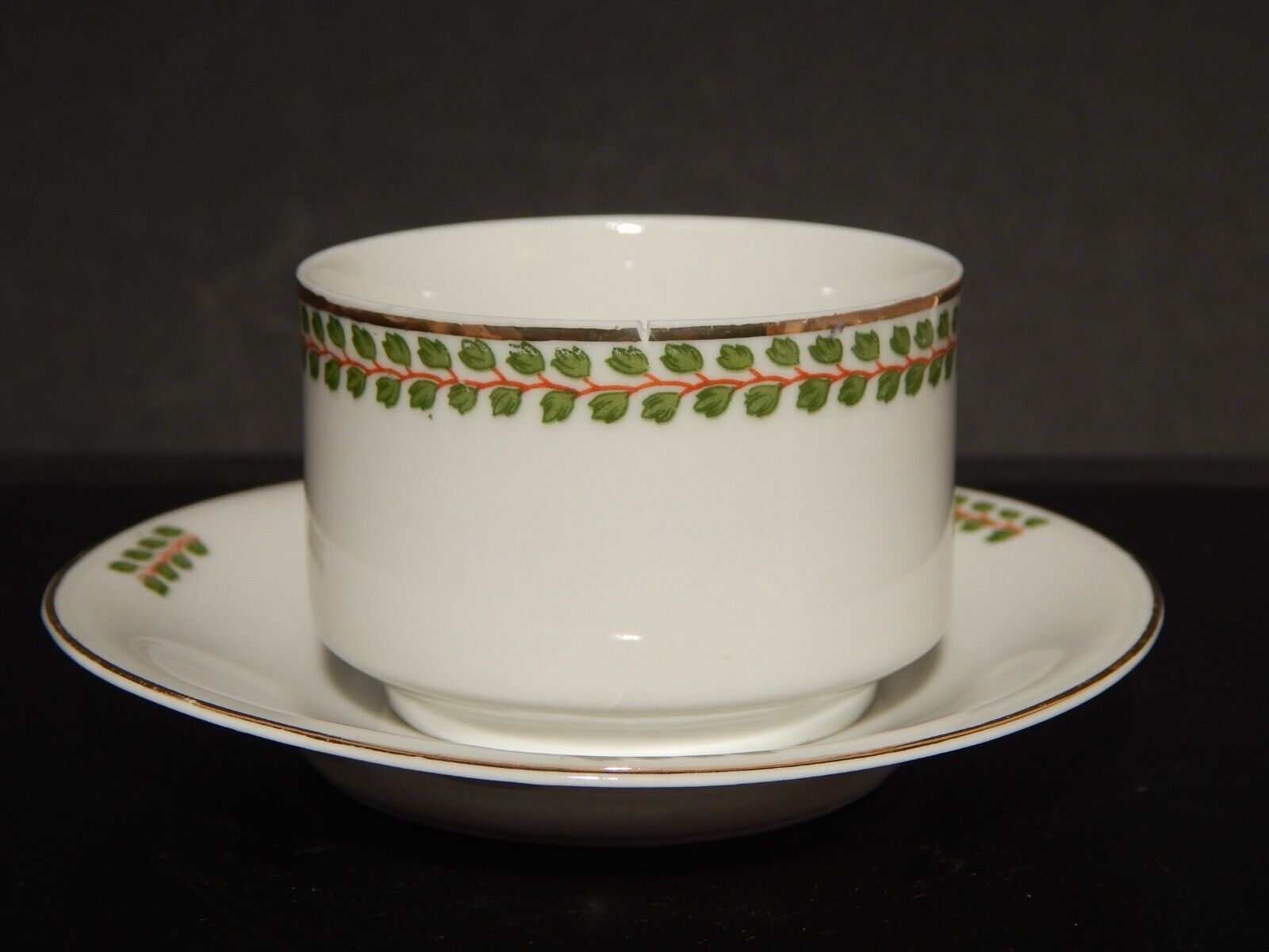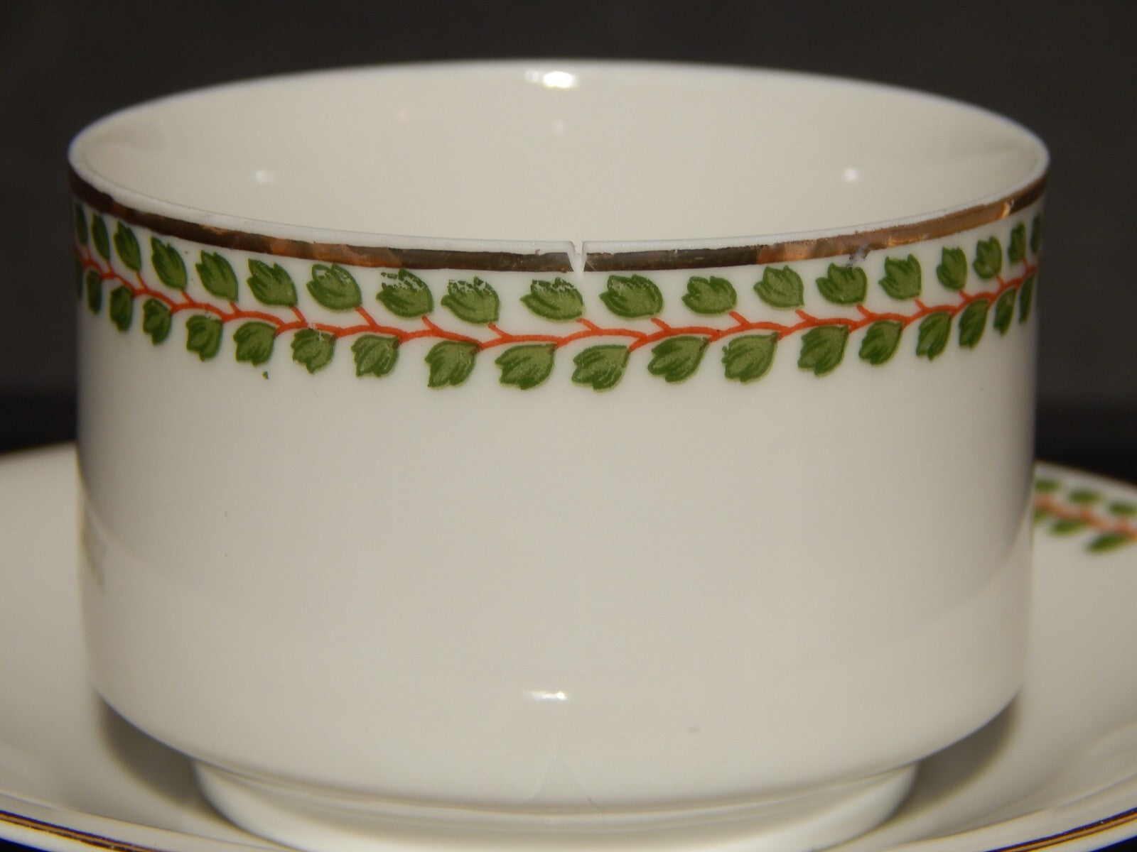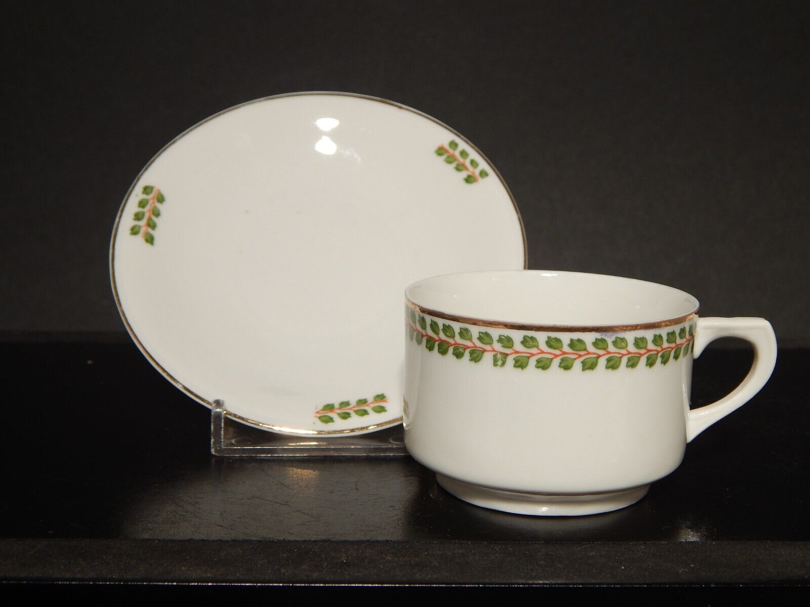 ANTICA IMPERO TAZZINA CAFFÈ PORCELLANA BIANCA GHIRLANDE PICCOLE FOGLIE VERDI