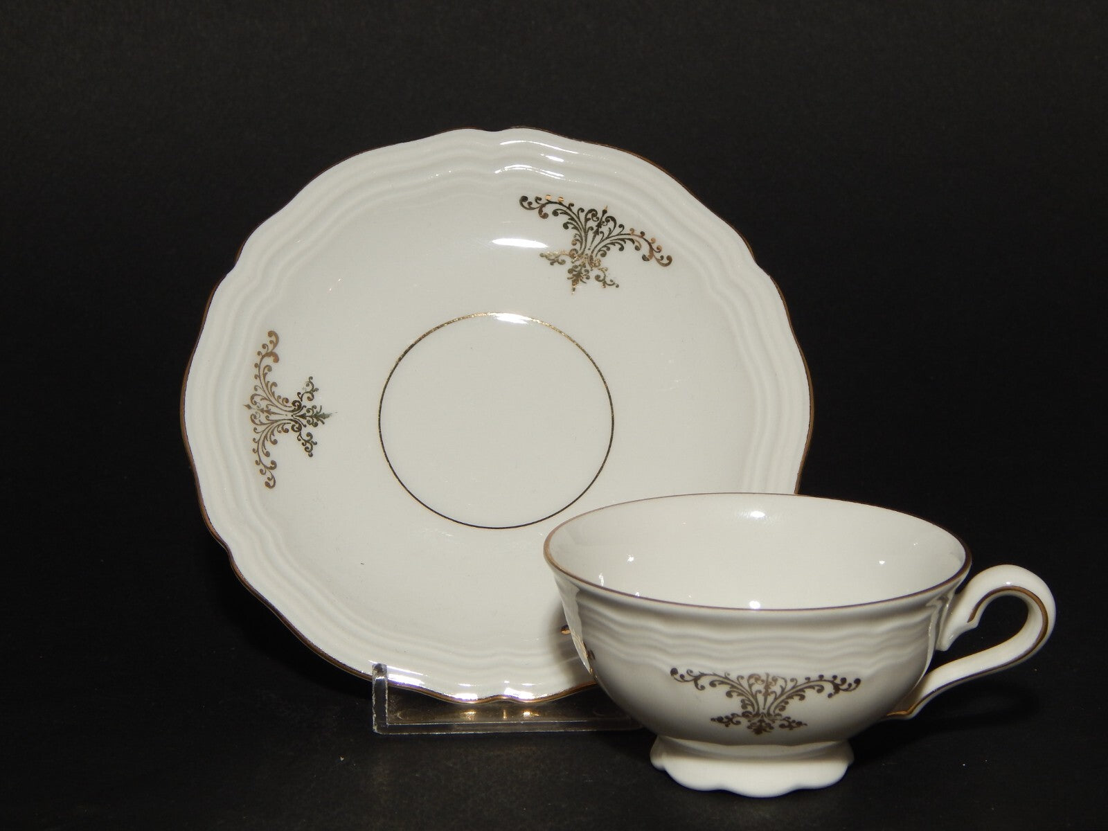 In questa inserzione viene presentata un'antica tazzina da caffè realizzata nel 1930 dalla manifattura tedesca Bavaria Seltmann Weiden nella famosa forma Marie Luise. La tazzina in porcellana bianca è decorata con arabeschi in oro zecchino