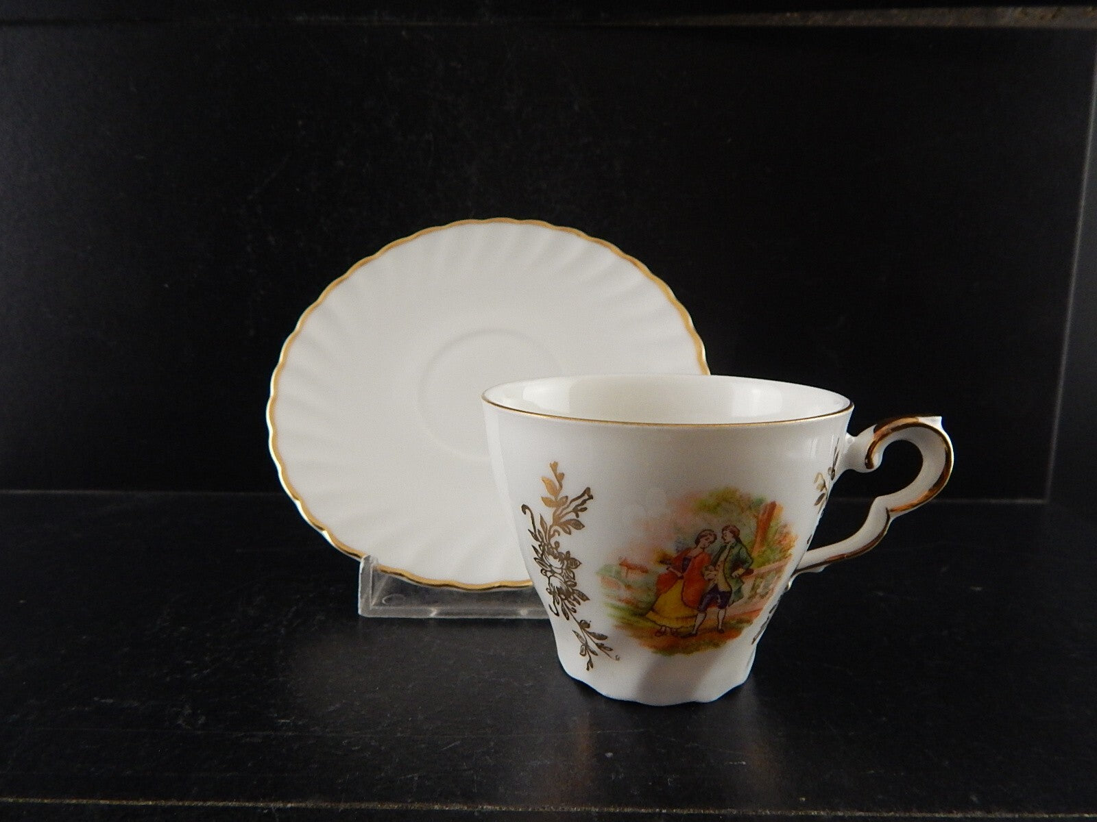 ANTICA TAZZINA CAFFE' PORCELLANA RHEINPFALZ HARTPORZELLAN BAVARIA SCENA GALANTE