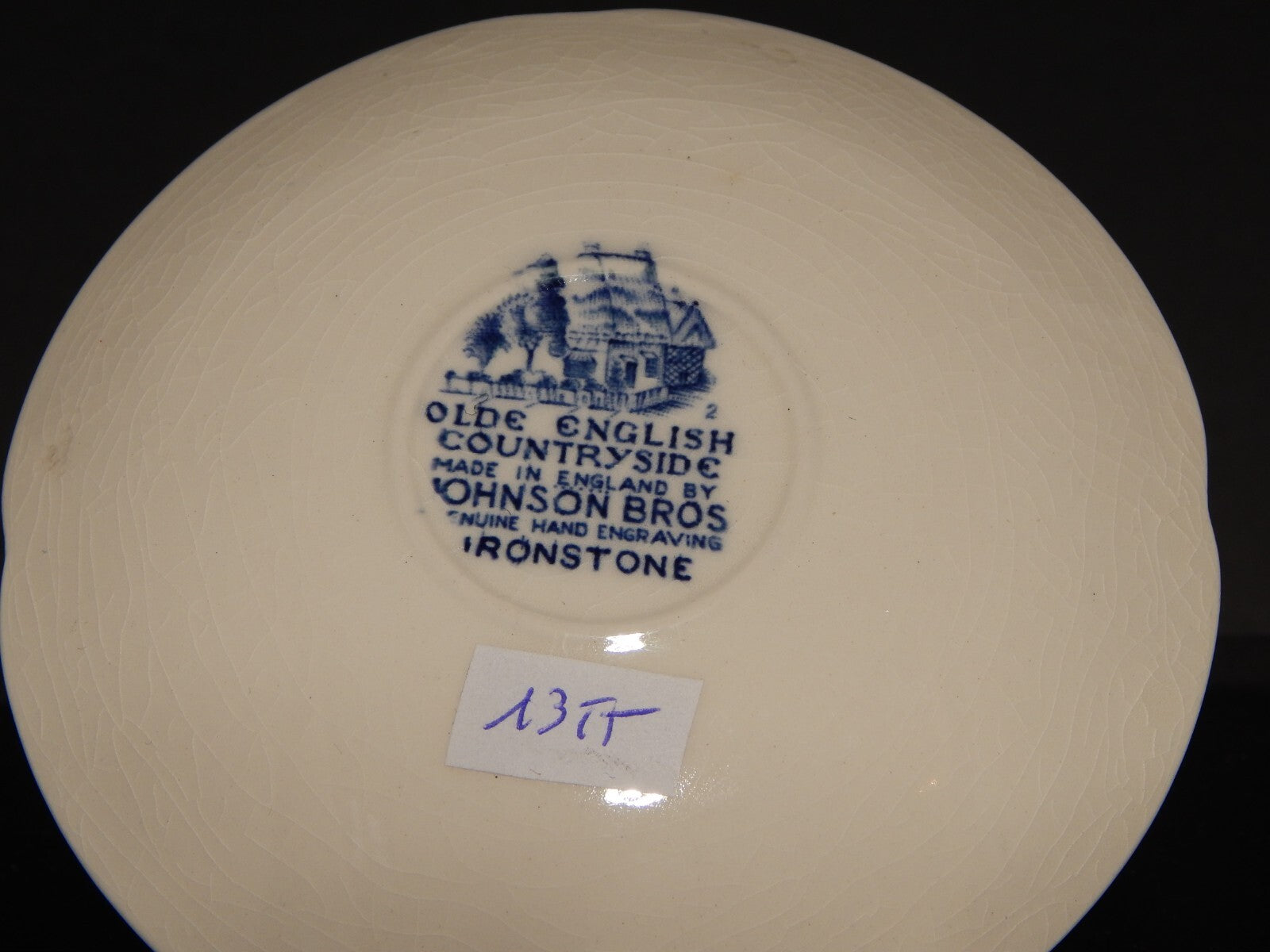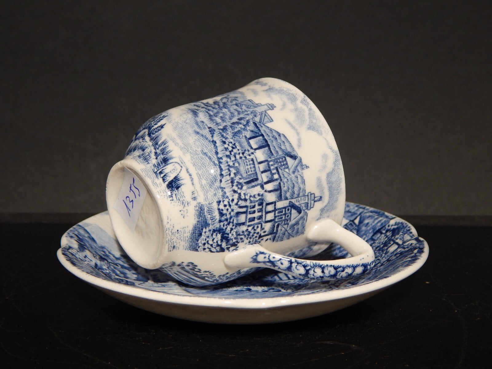 In questa inserzione viene presentata una tazzina da caffè con rispettivo piattino in semi porcellana inglese della manifattura Johnson Bros nel decoro stampato a mano Olde English Countryside