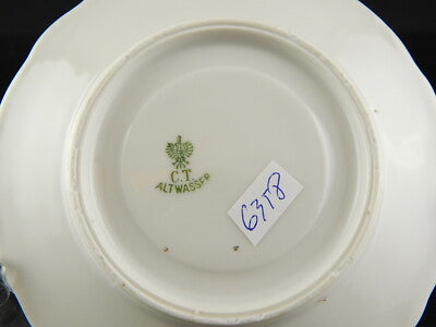 In questa inserzione viene presentato un set da caffè, tazzina e piattino, realizzato dalla manifattura tedesca Altwasser C.T. alla fine del 1800